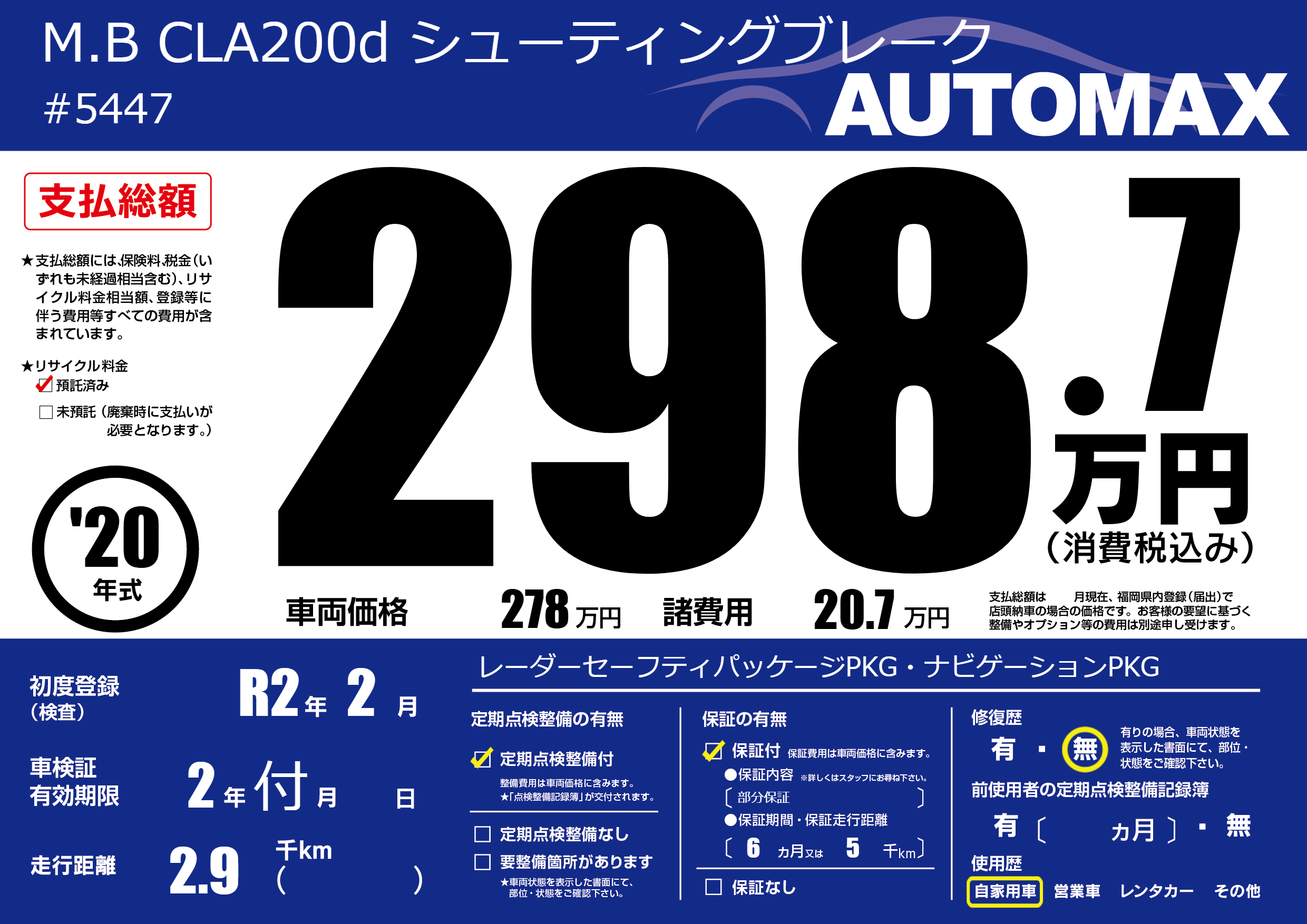 | 定期点検整備 | 定期点検整備あり | ||