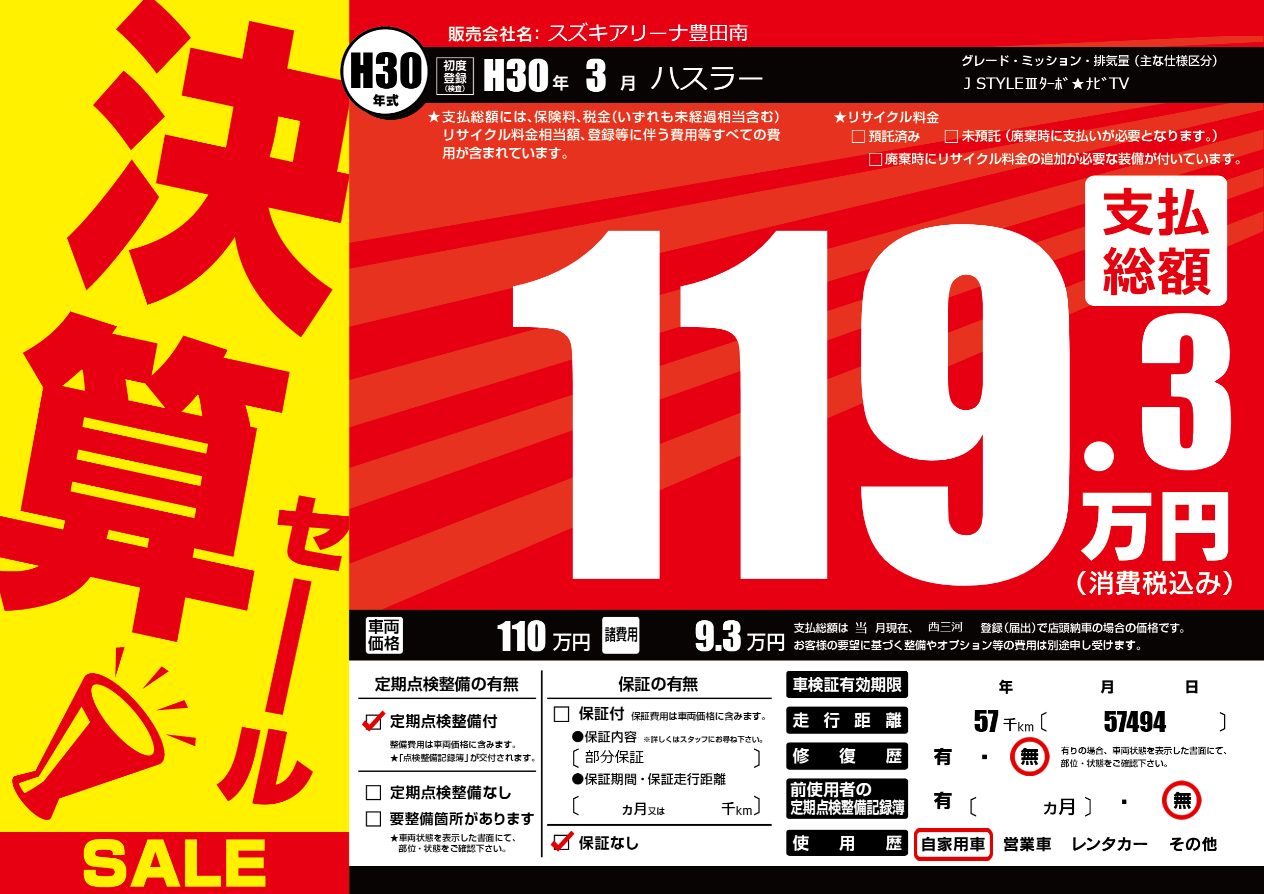 初年度登録 H30年3月