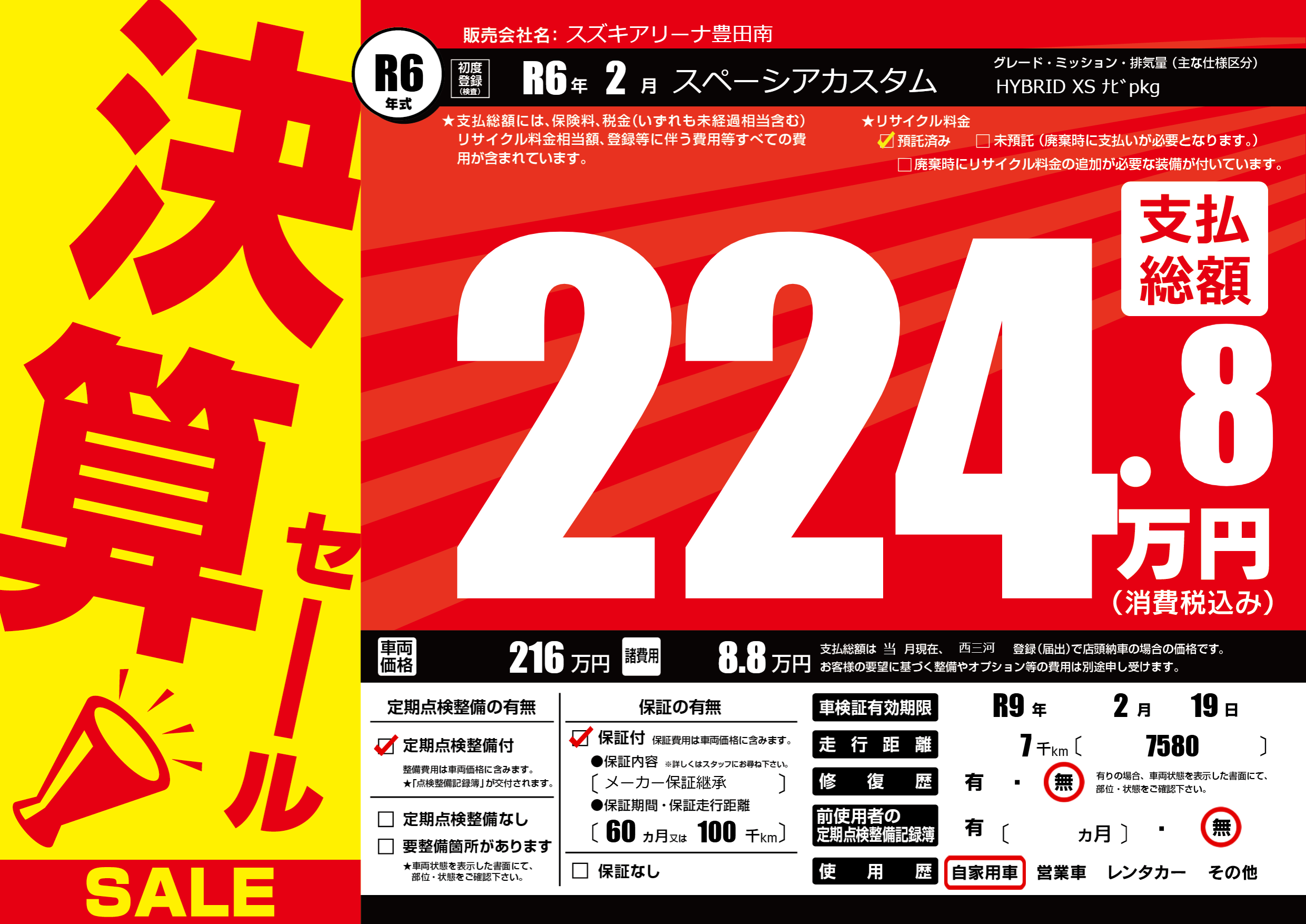 | 走行キロ | 0.7万km | 初年度登録 | R6年2月 |