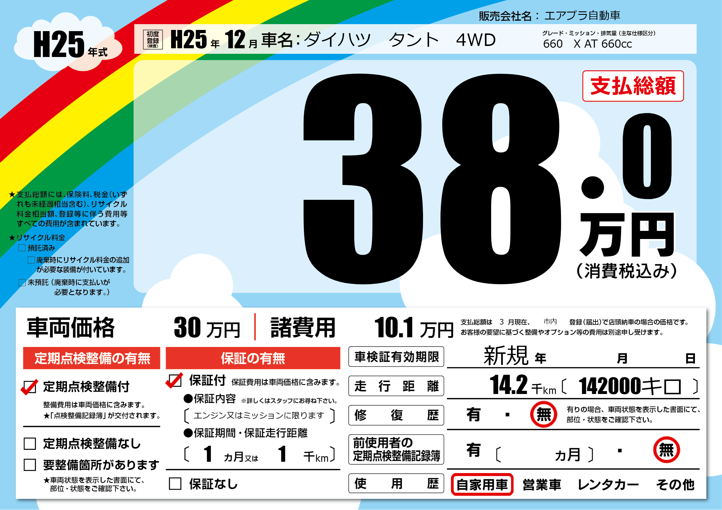 | 定期点検整備 | 定期点検整備あり | ||