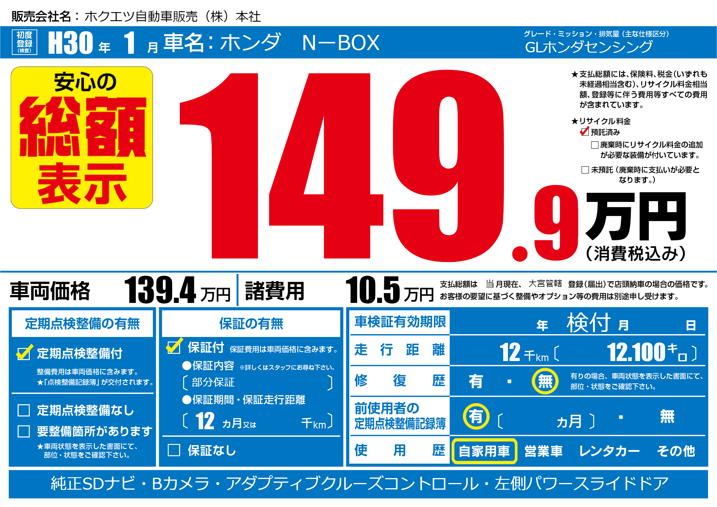 | 定期点検整備 | 定期点検整備あり | ||