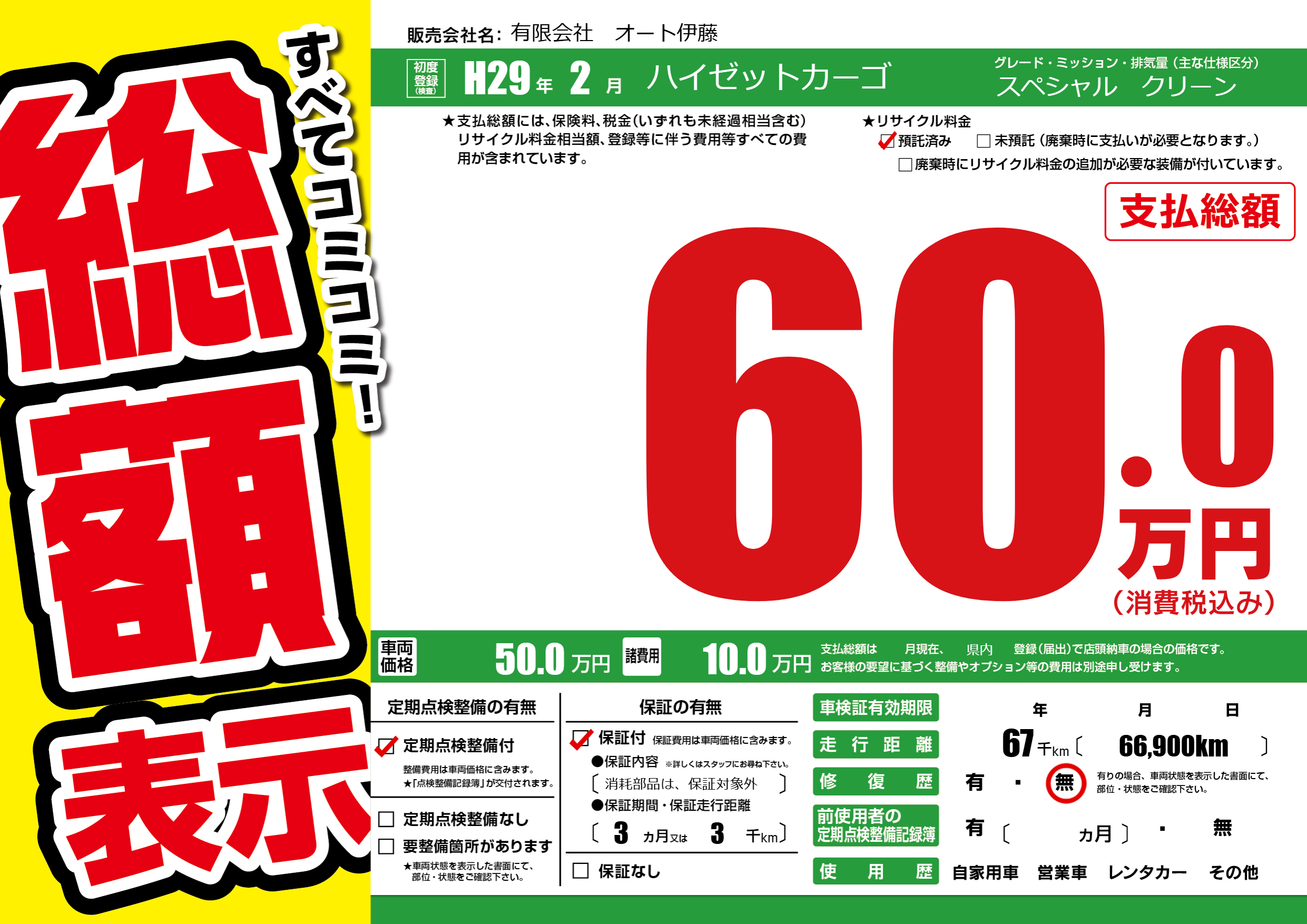 定期点検整備 | 定期点検整備あり |