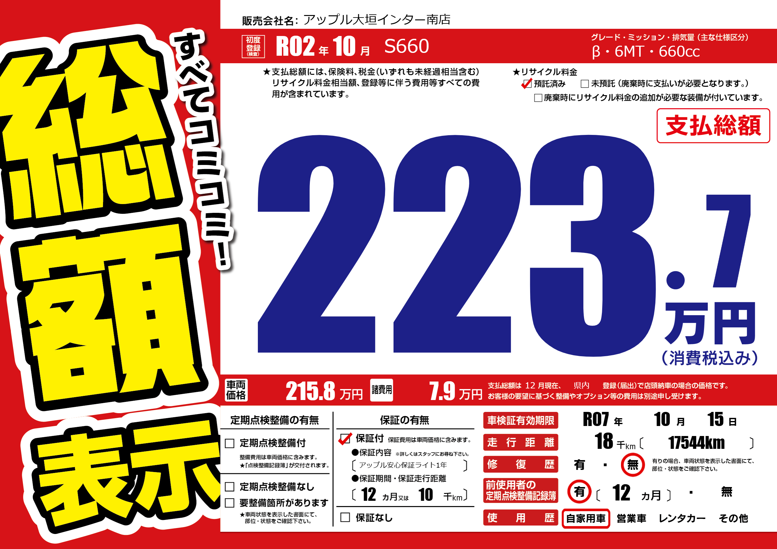 保証付き 保証内容(アップル安心保証ライト1年) 12ヶ月または(10)千kmまで |