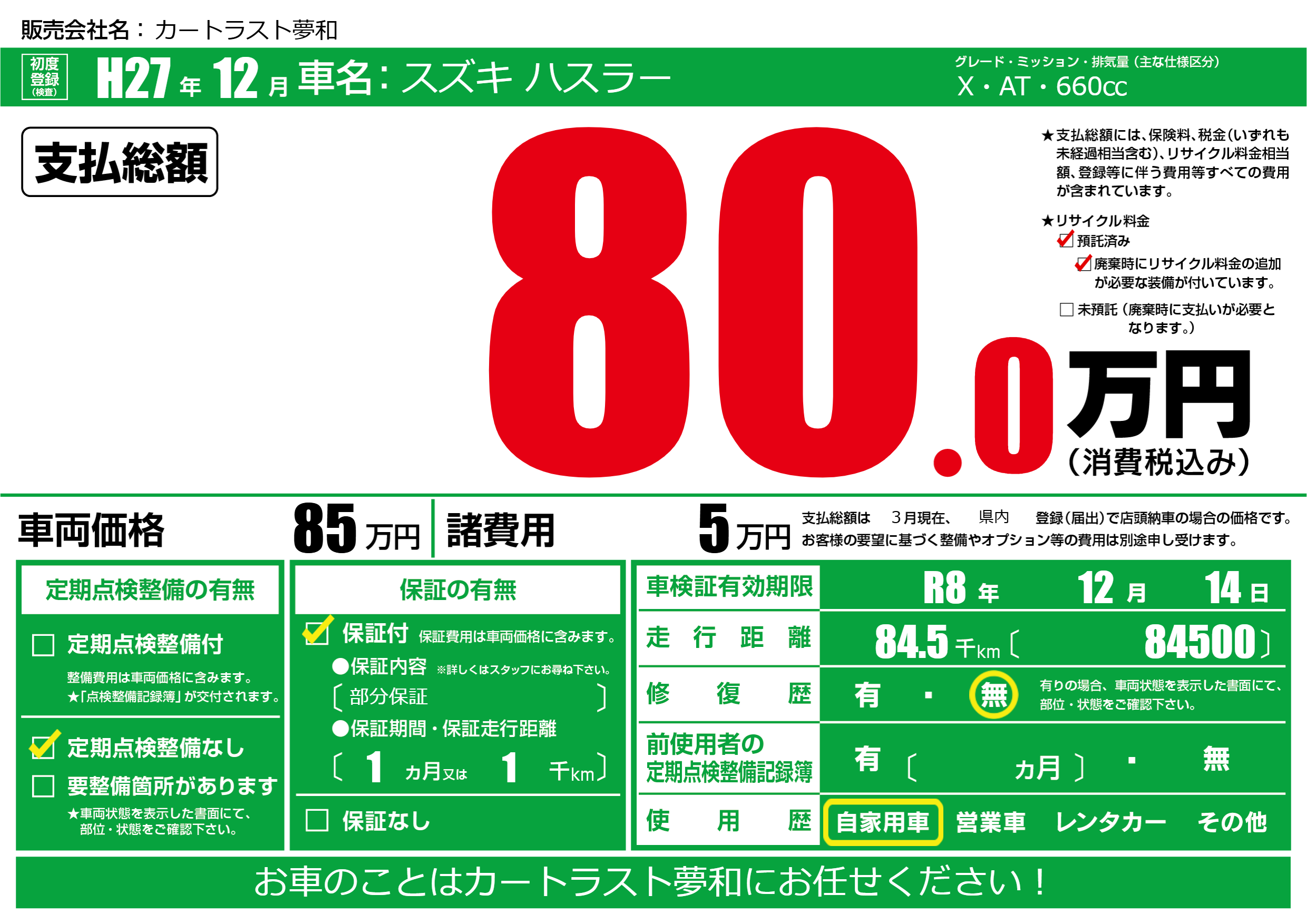 なし | 車検制限 | R8年12月14月 |
