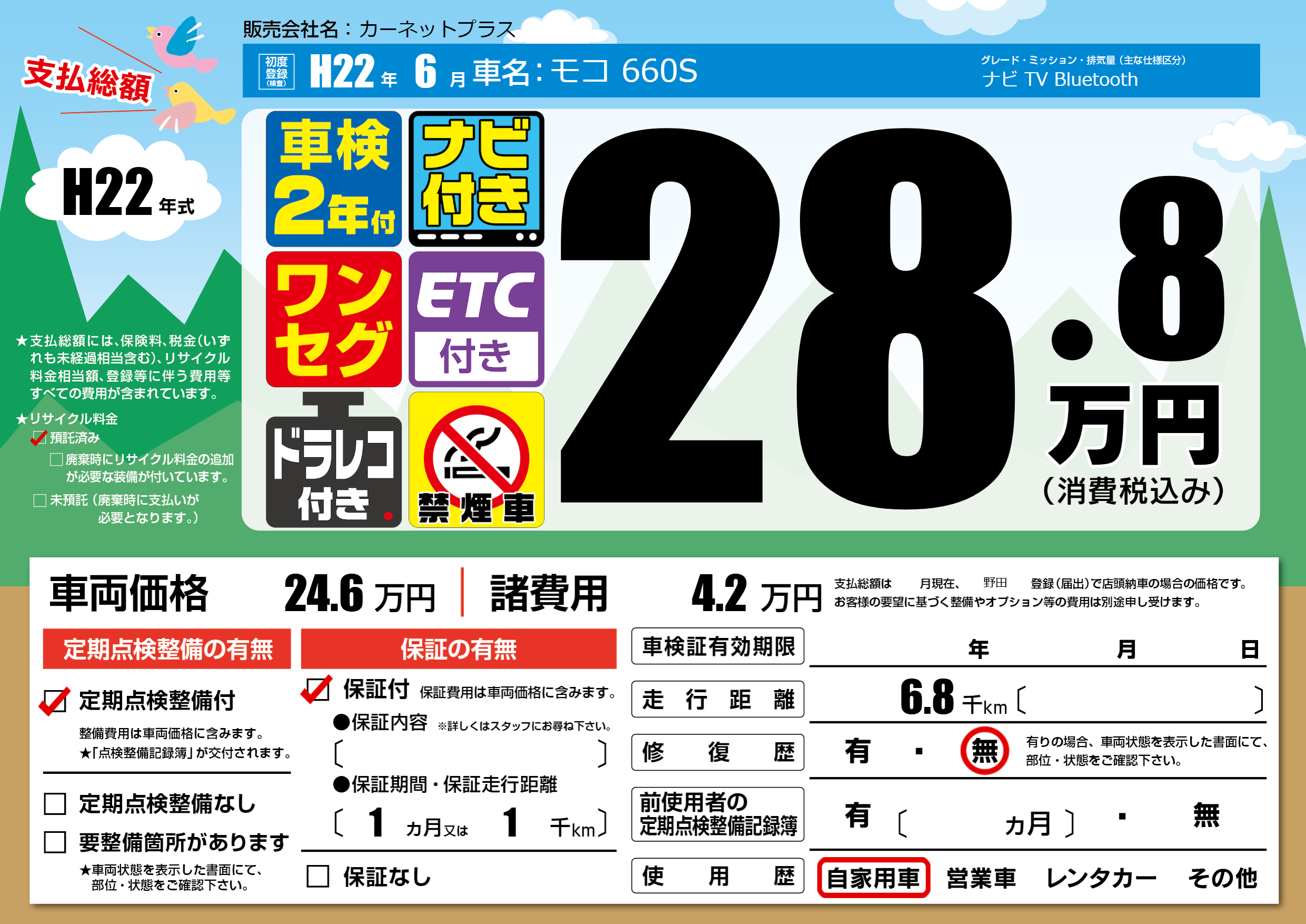 | 車名 | モコ 660S | グレード ミッション 排気量 |