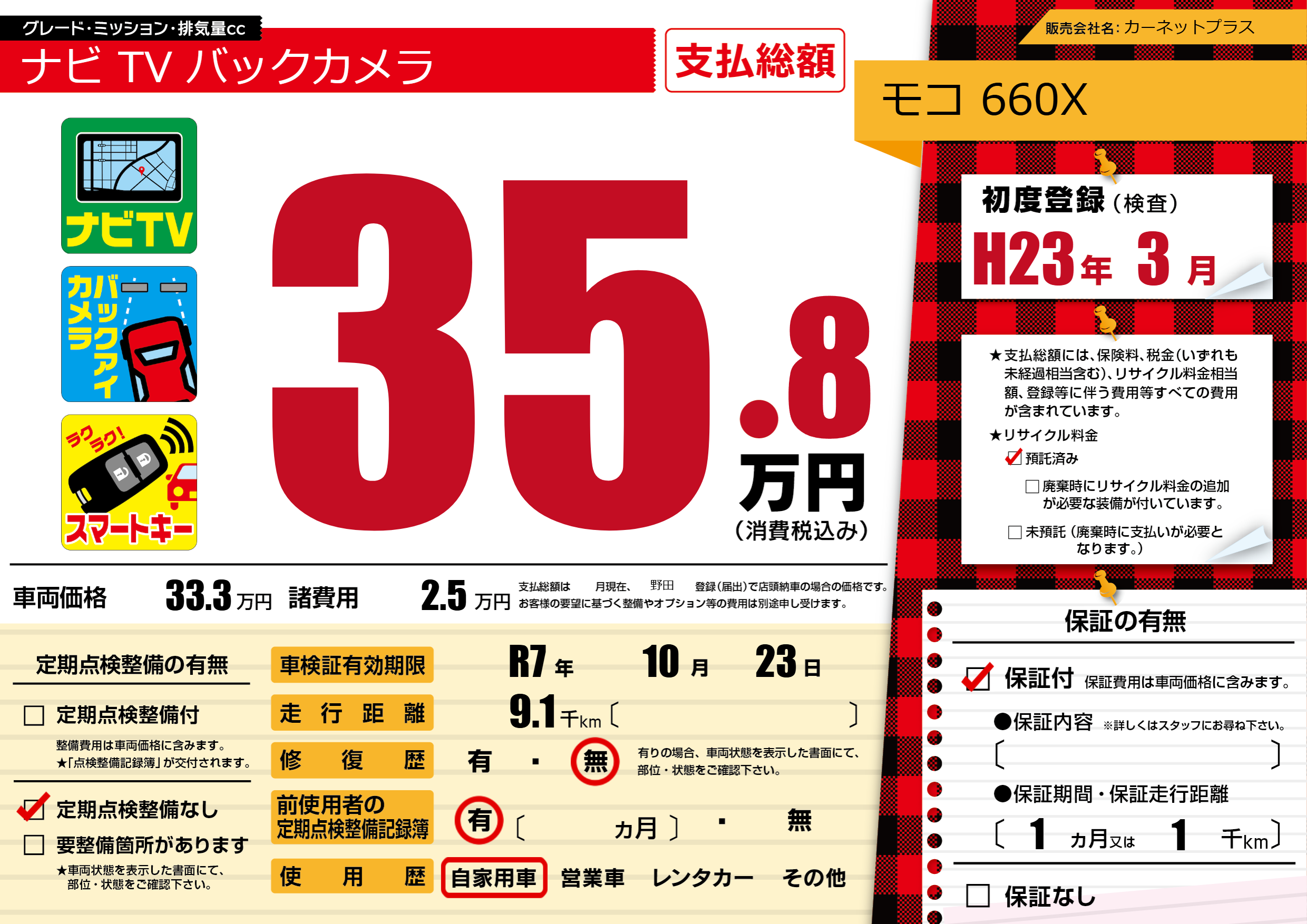 | 車名 | モコ 660X | グレード ミッション 排気量 |