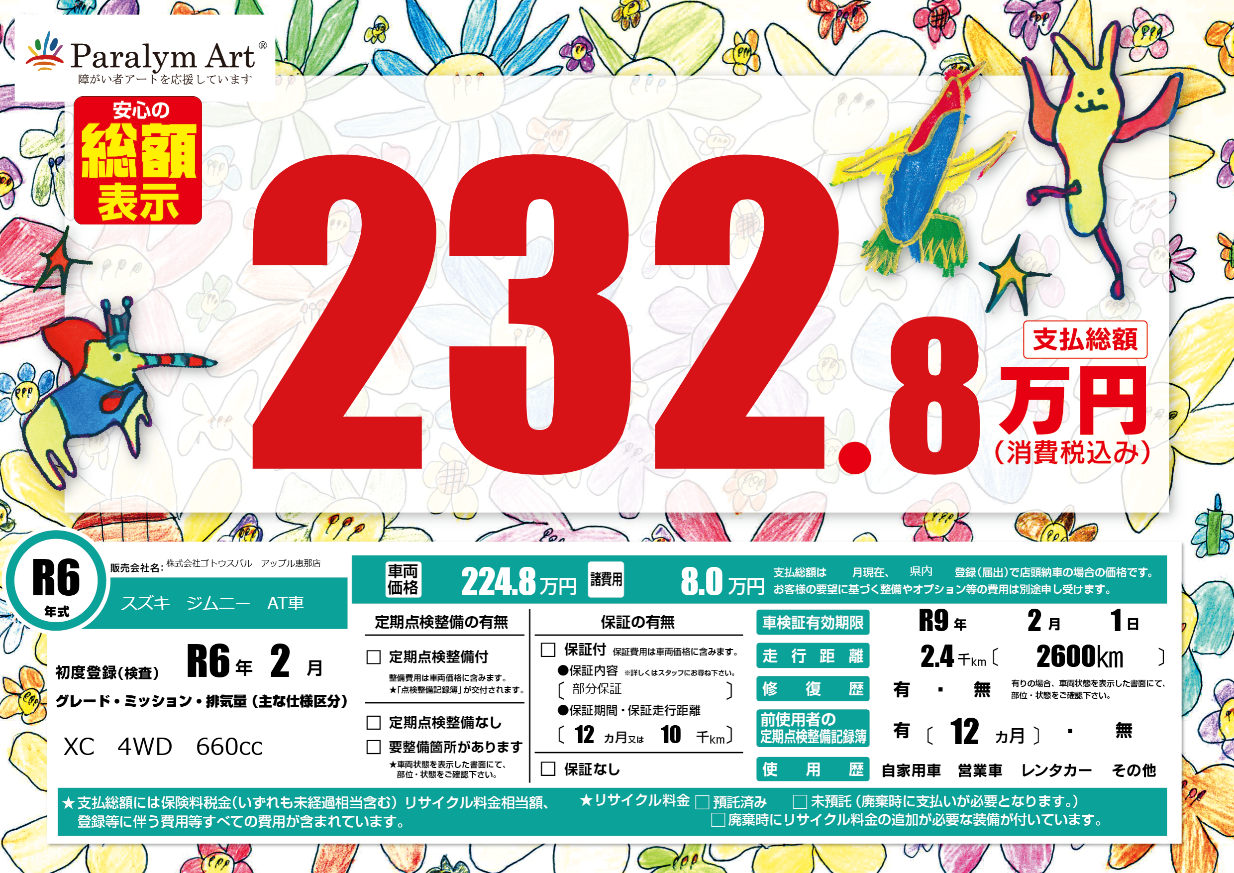 | 走行キロ | 0.2万km | 初年度登録 | R6年2月 |