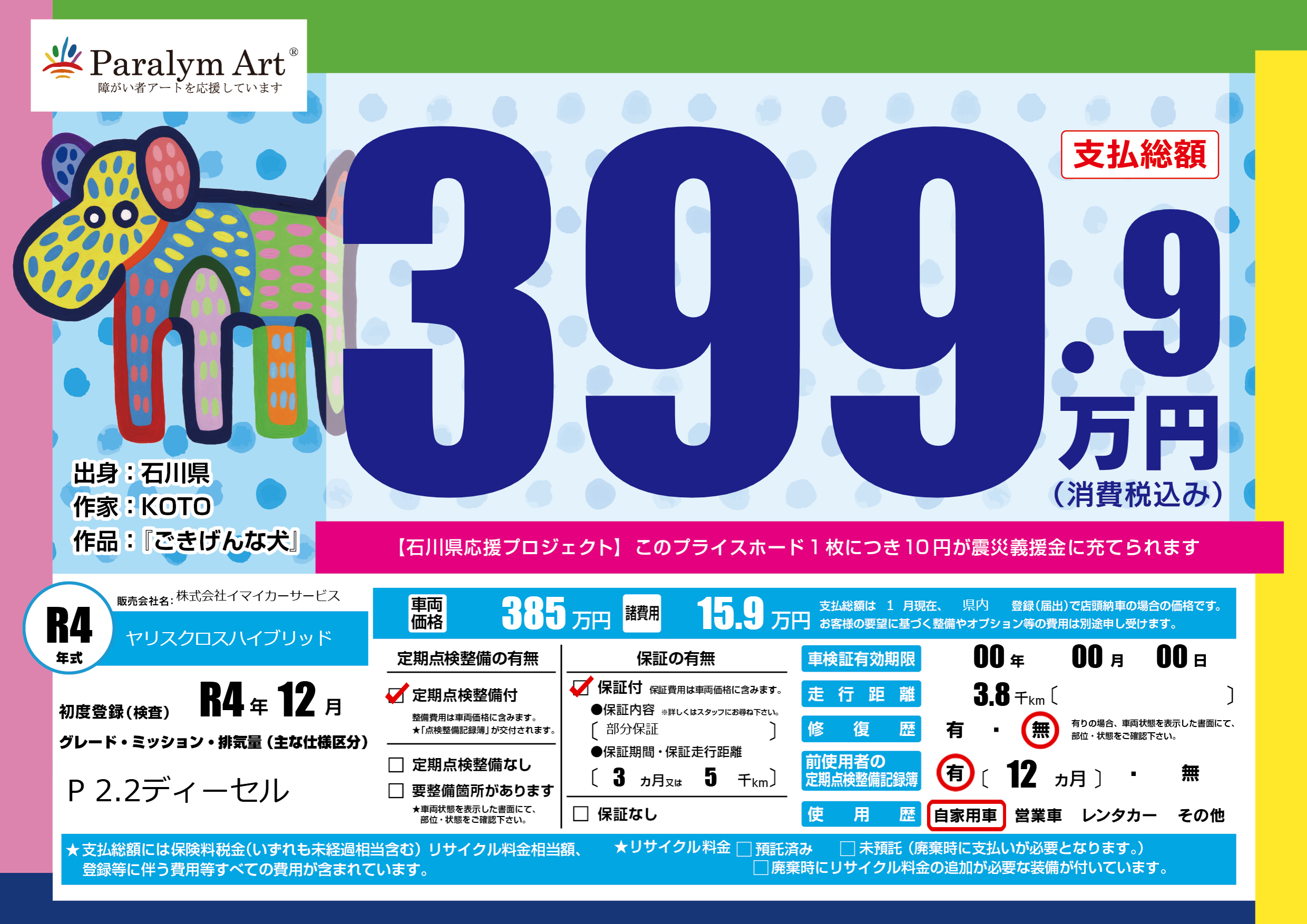 | 走行キロ | 0.3万km | 初年度登録 | R4年12月 |
