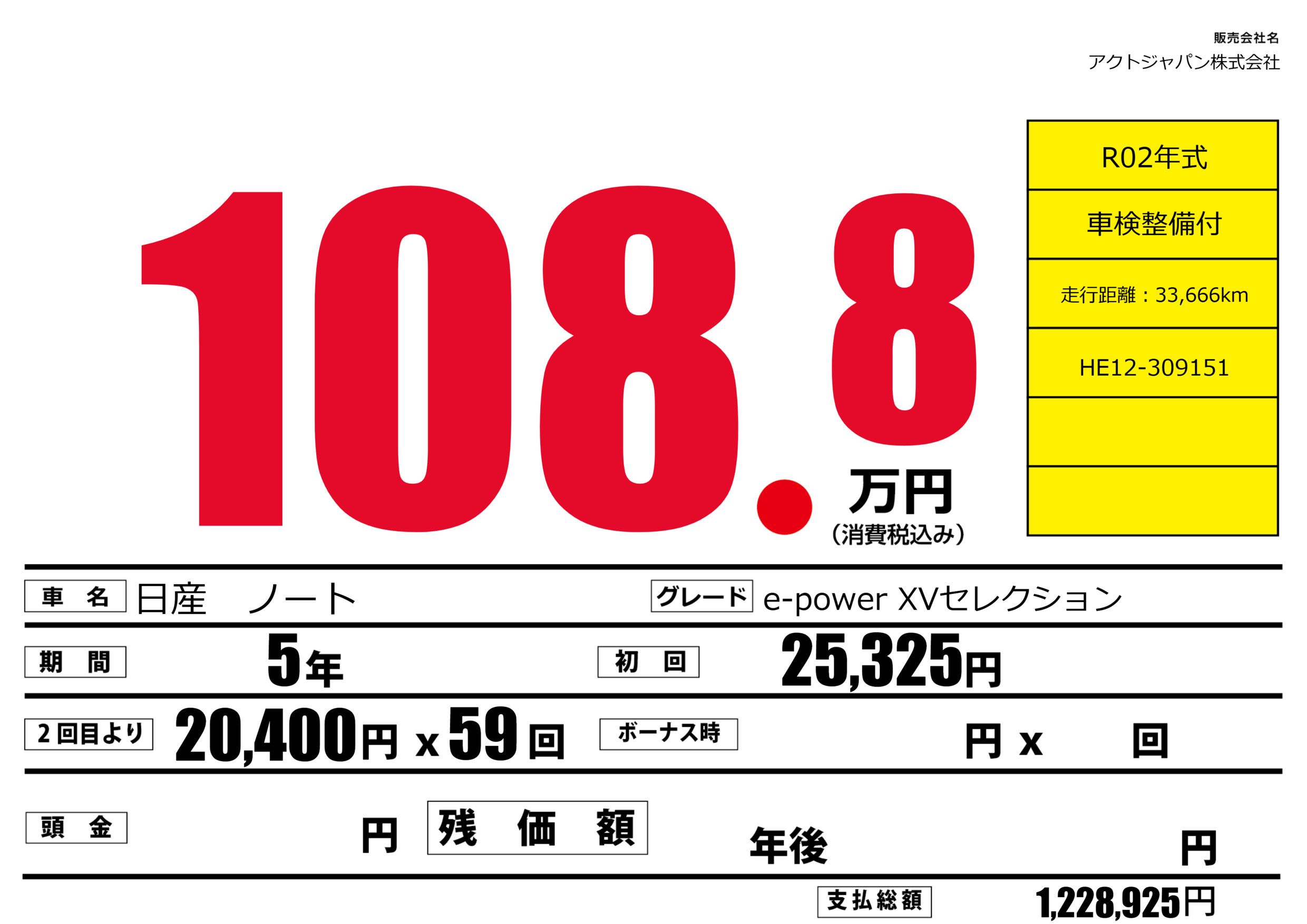 | 車名 | 日産 ノート | グレード ミッション 排気量 |