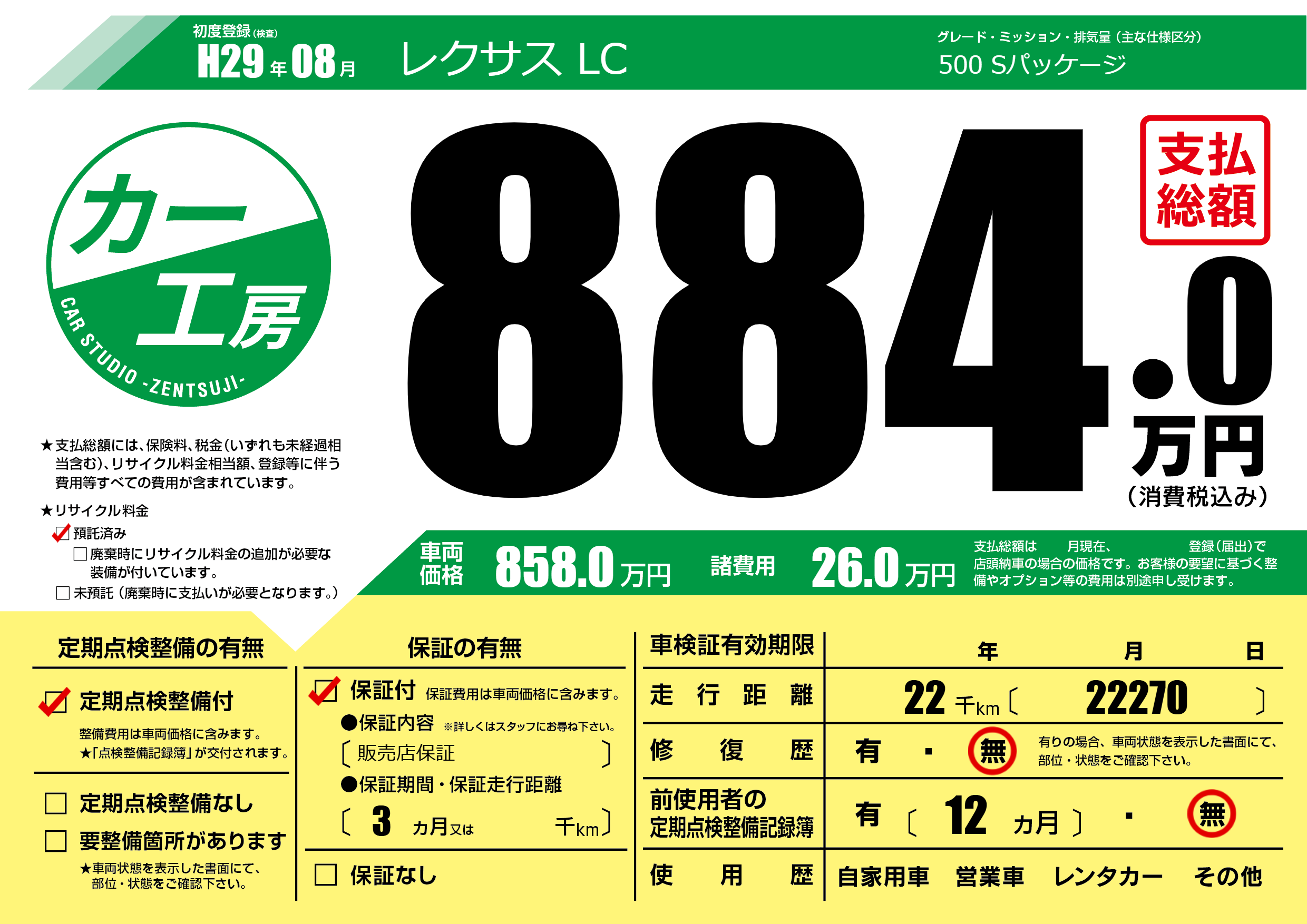 | 車名 | レクサス LC | グレード ミッション 排気量 |