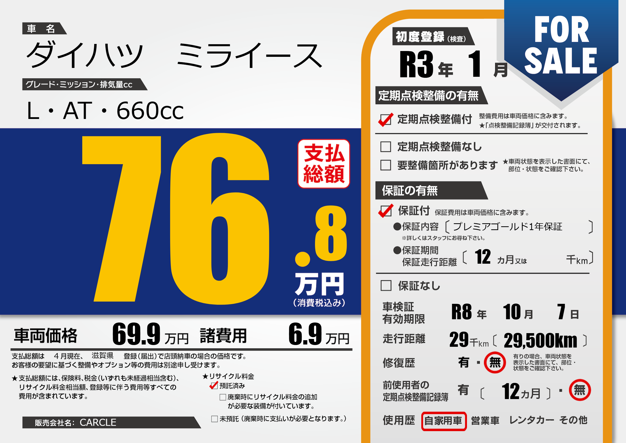 | 定期点検整備 | 定期点検整備あり | ||