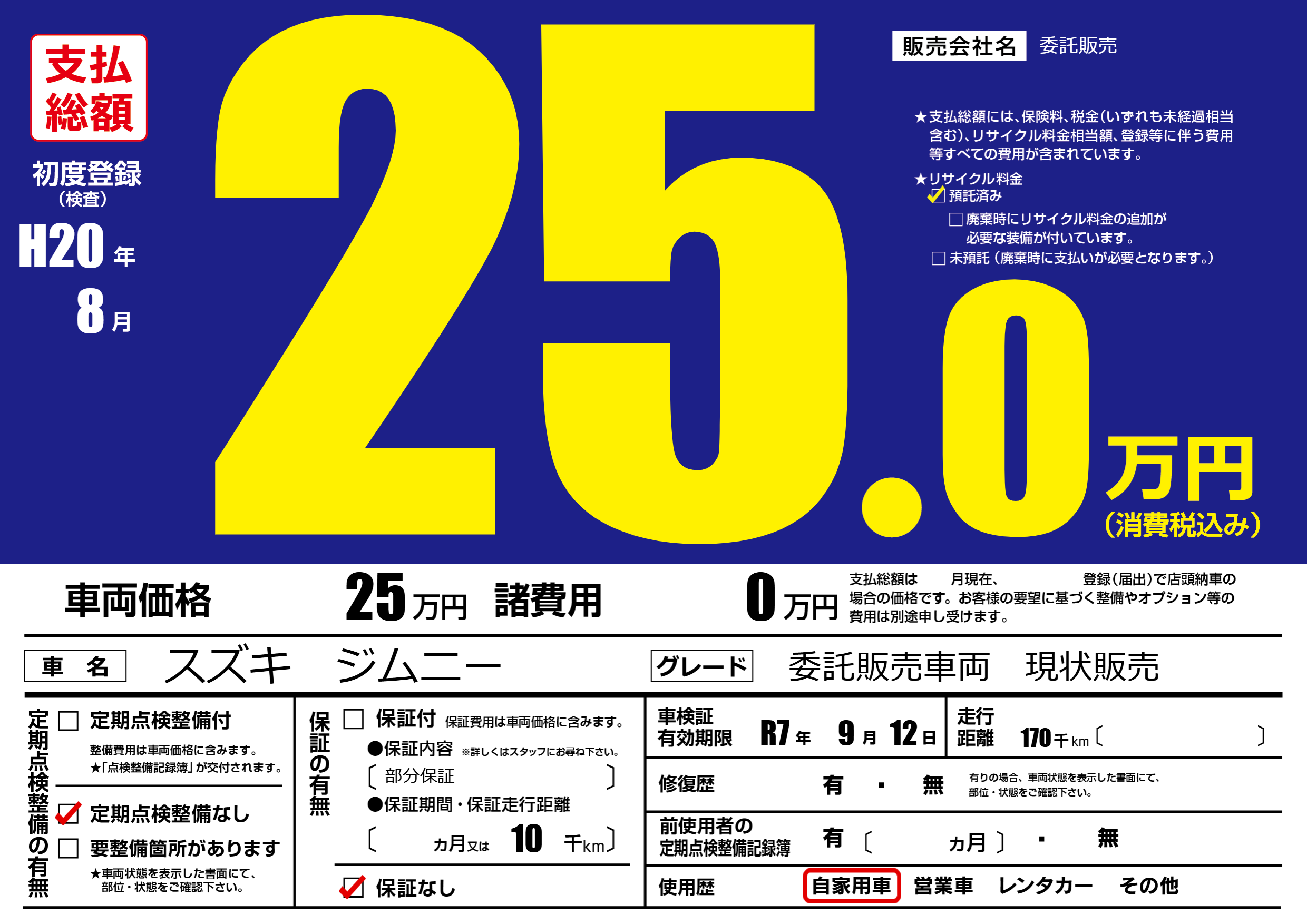 委託販売車両 現状販売 |