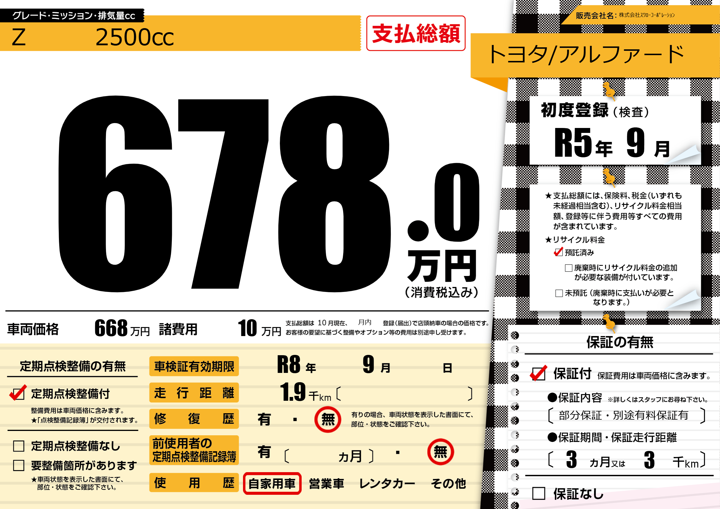 なし | 車検制限 | R8年9月---月 |