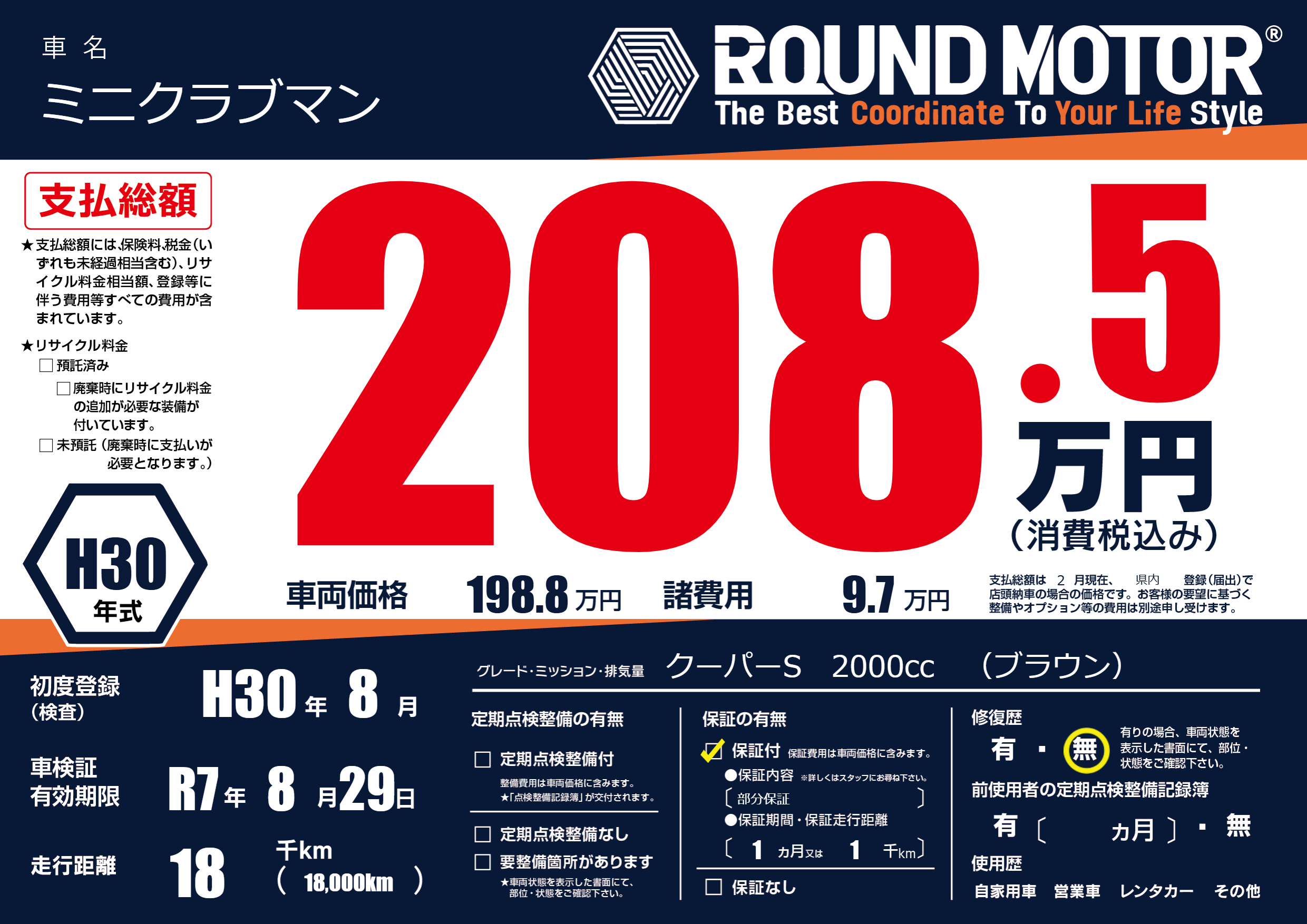 | 車名 | ミニクラブマン | グレード ミッション 排気量 |