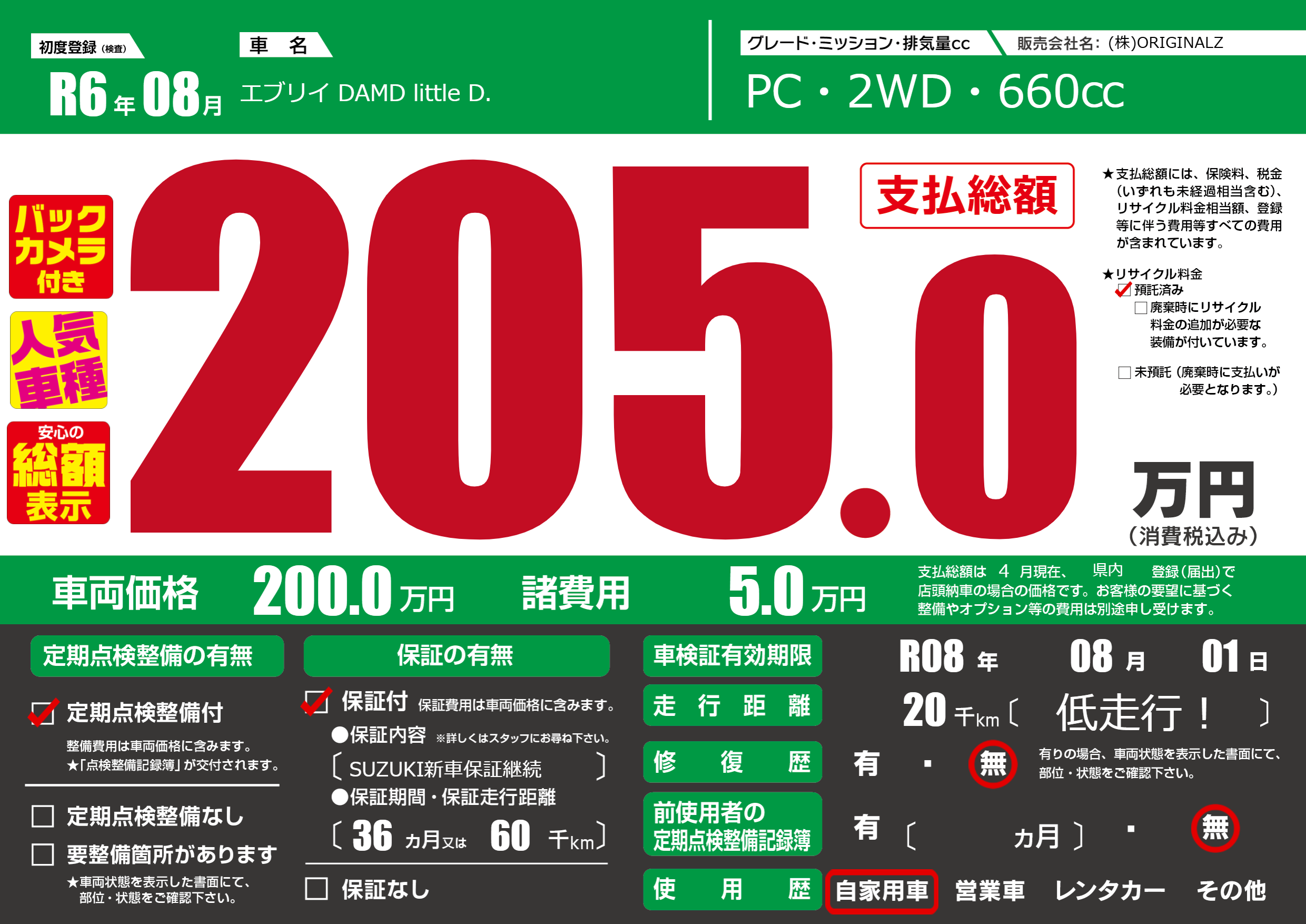 | 車名 | エブリイ DAMD little D. | グレード ミッション 排気量 |