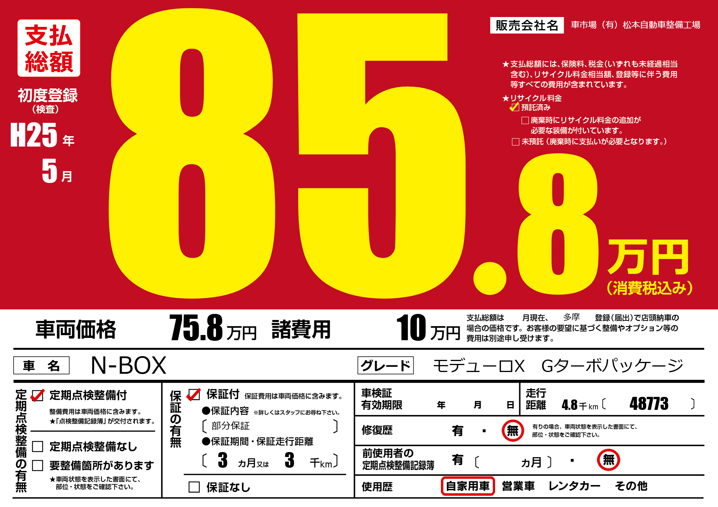 | 車名 | N-BOX | グレード ミッション 排気量 |