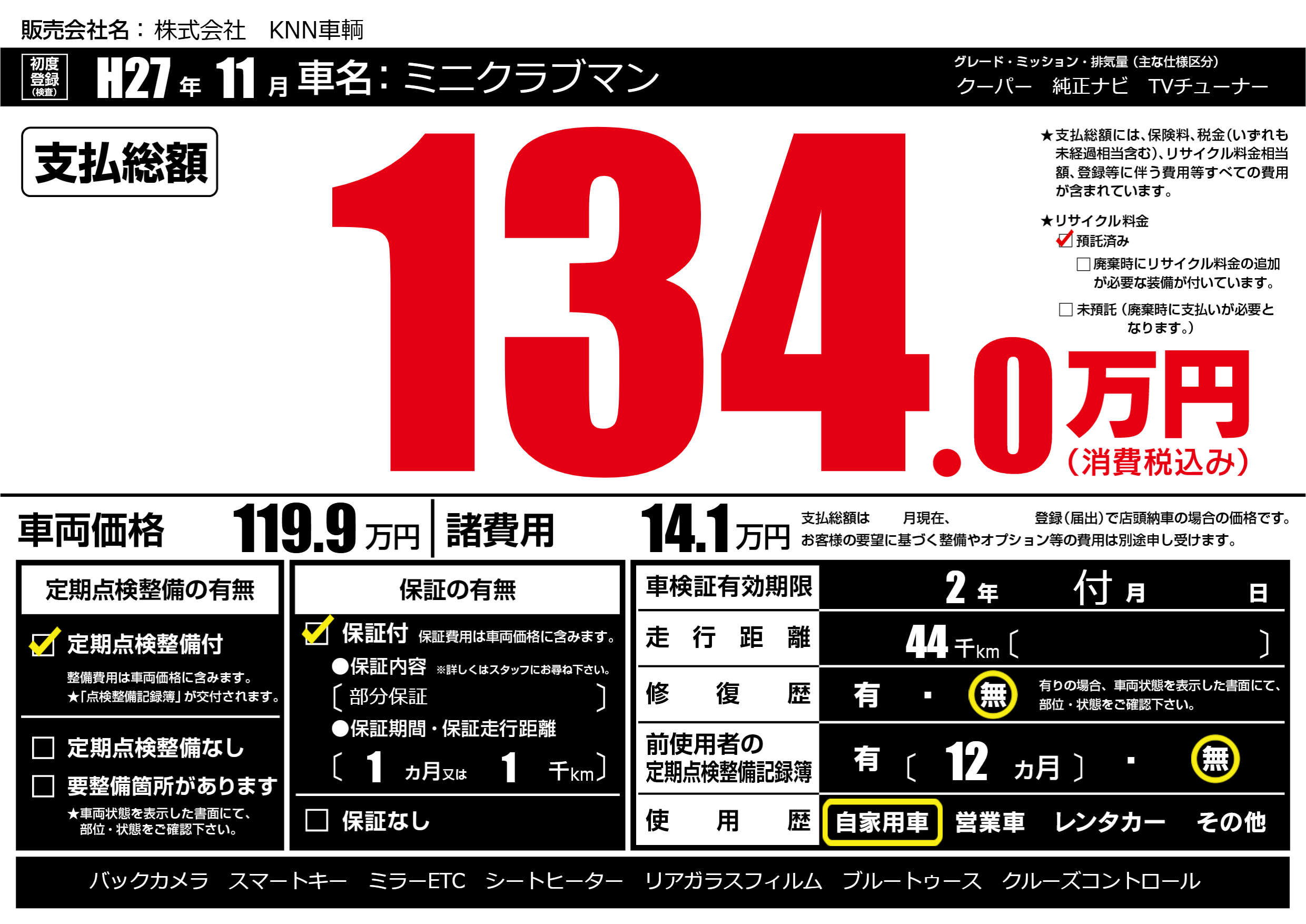 | 車名 | ミニクラブマン | グレード ミッション 排気量 |
