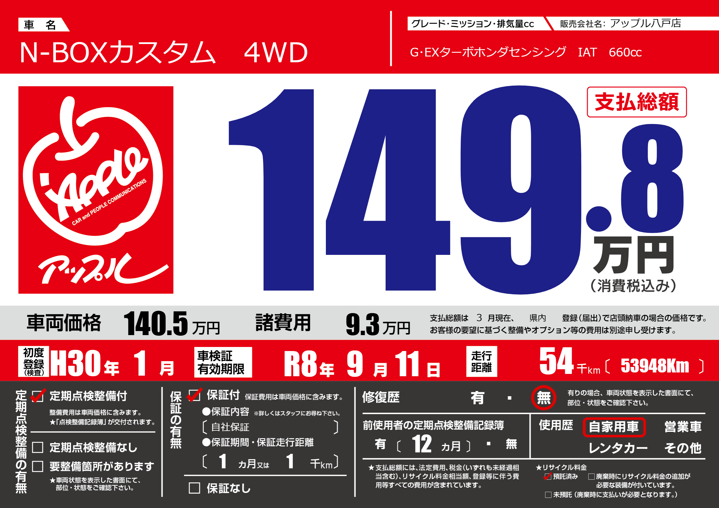 | 車検制限 | R8年 9月 11日 | ||