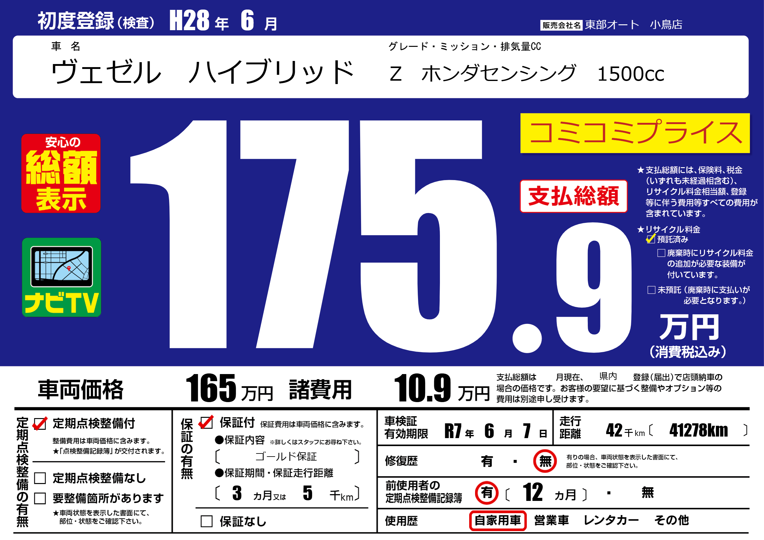 なし | 車検制限 | R7年6月7月 |
