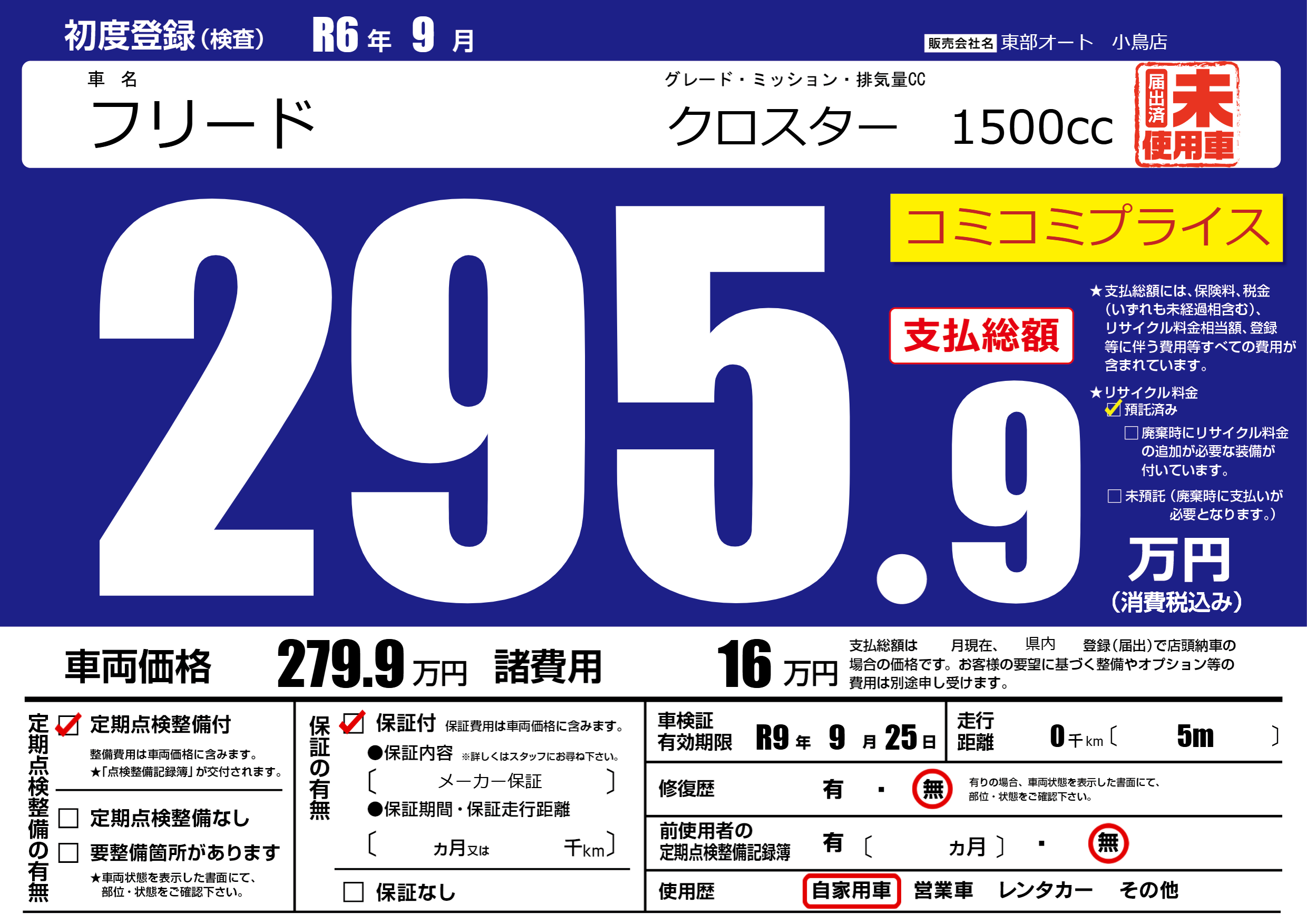 | 走行キロ | - | 初年度登録 | R6年9月 |