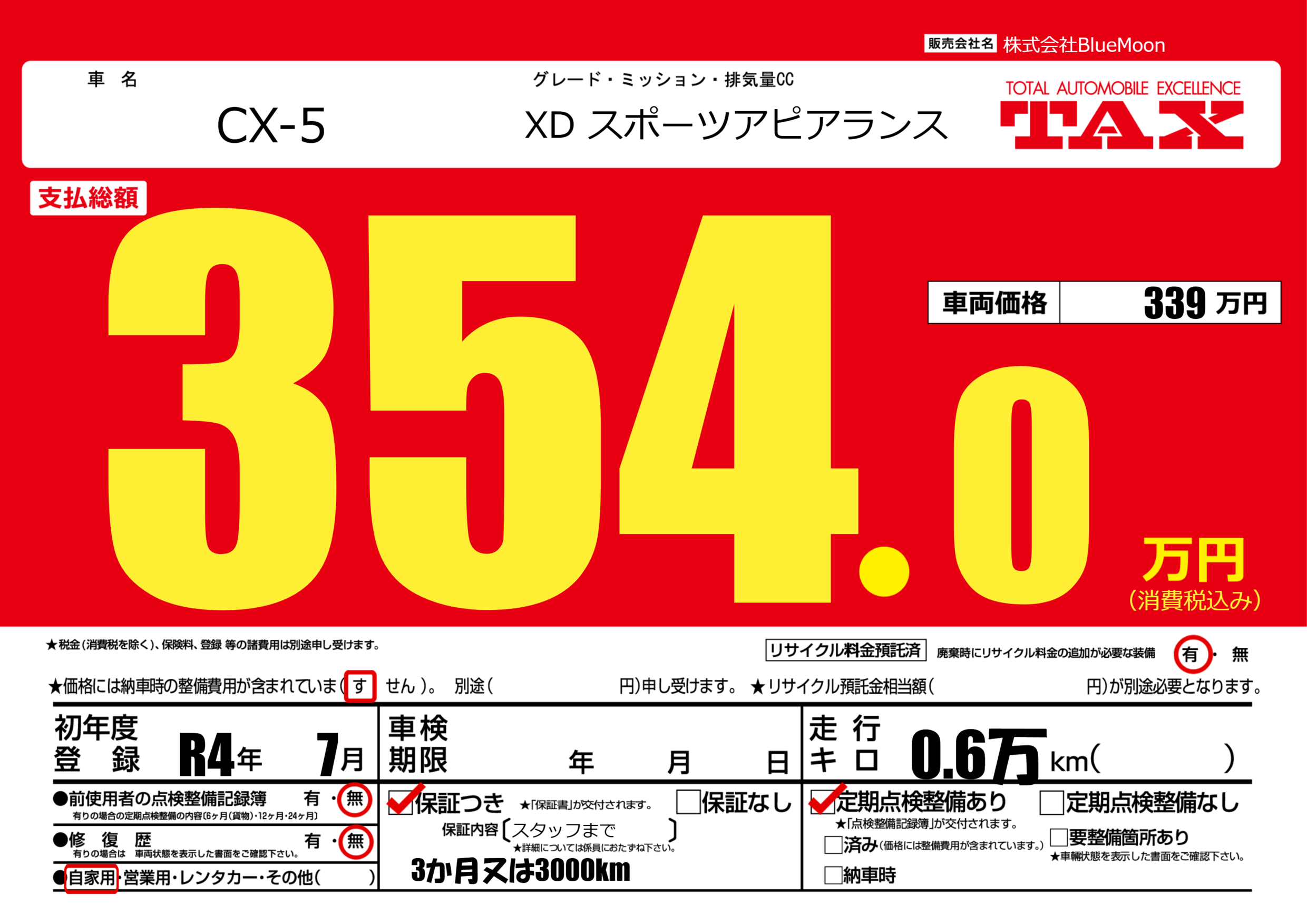 | 車名 | CX-5 | グレード ミッション 排気量 |