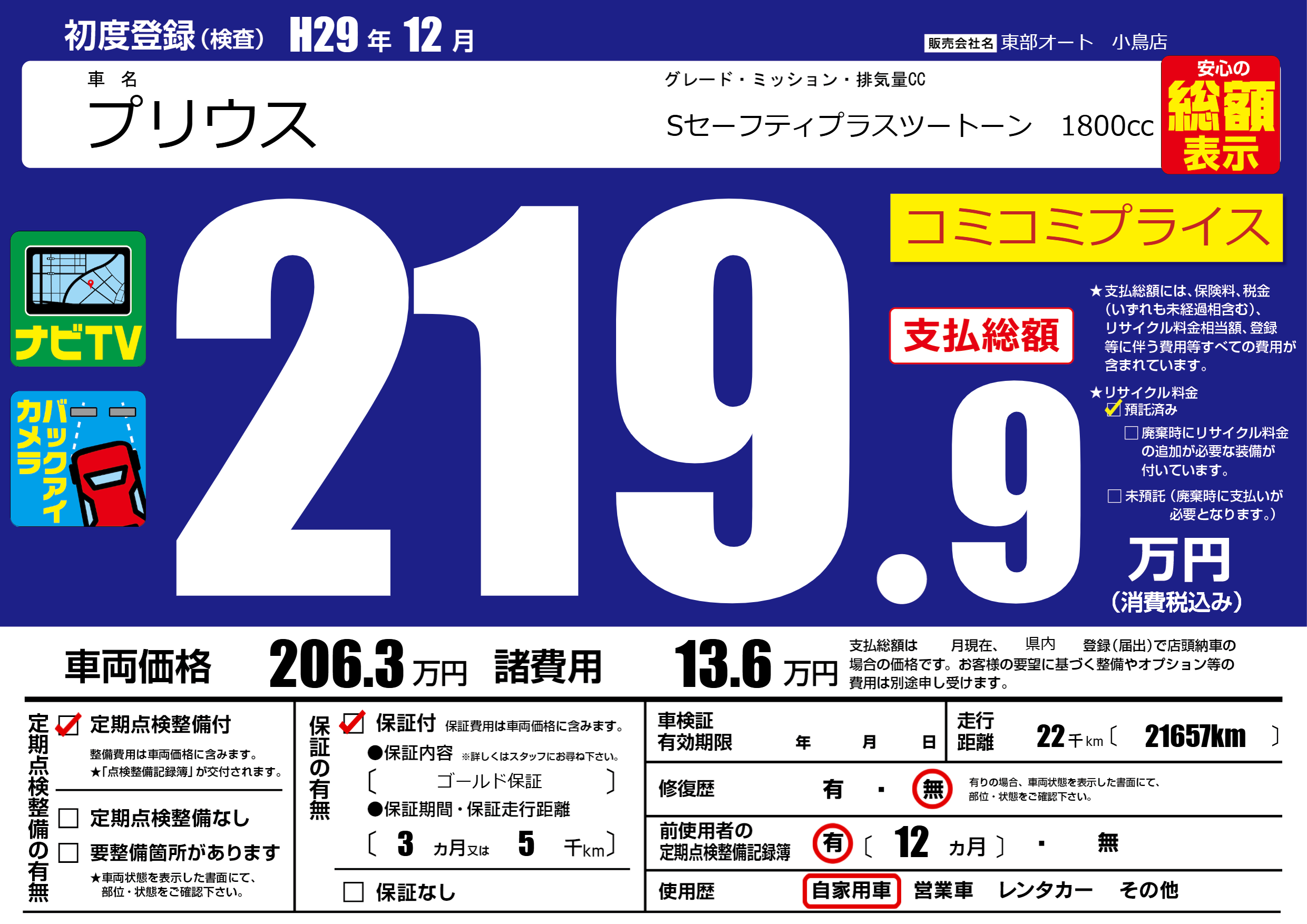 | 定期点検整備 | 定期点検整備あり | ||