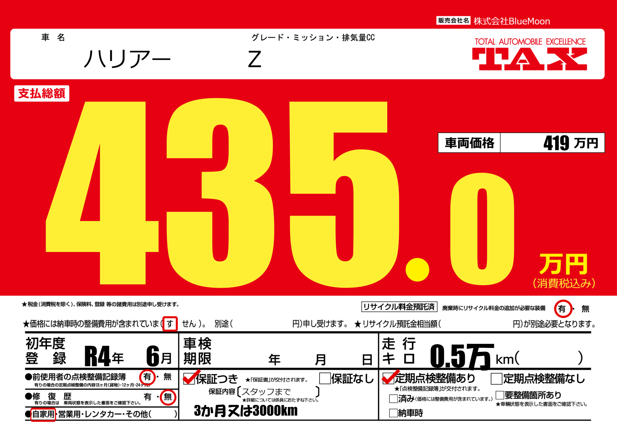 | 走行キロ | - | 初年度登録 | R4年6月 |