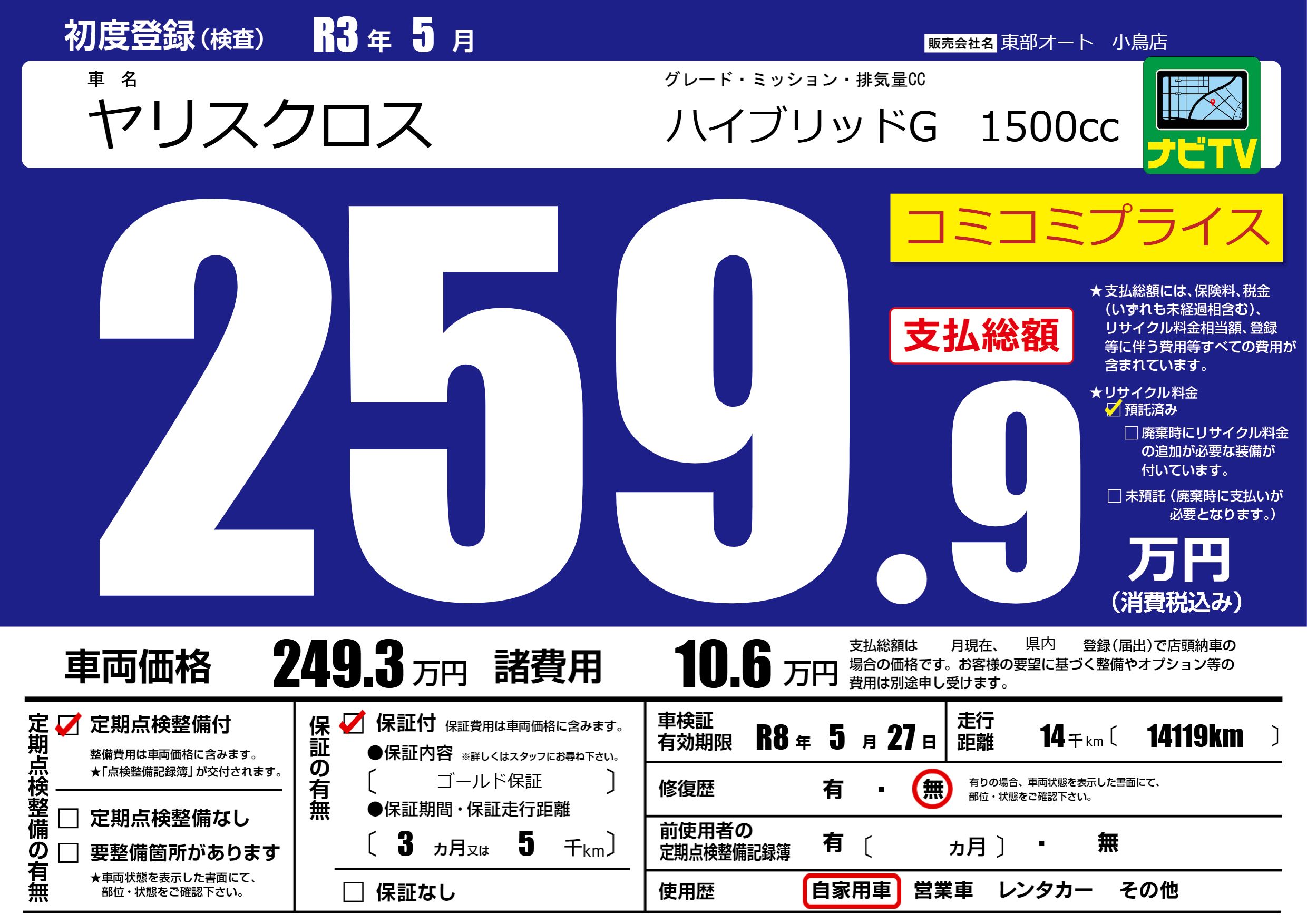 なし | 車検制限 | R8年5月27月 |