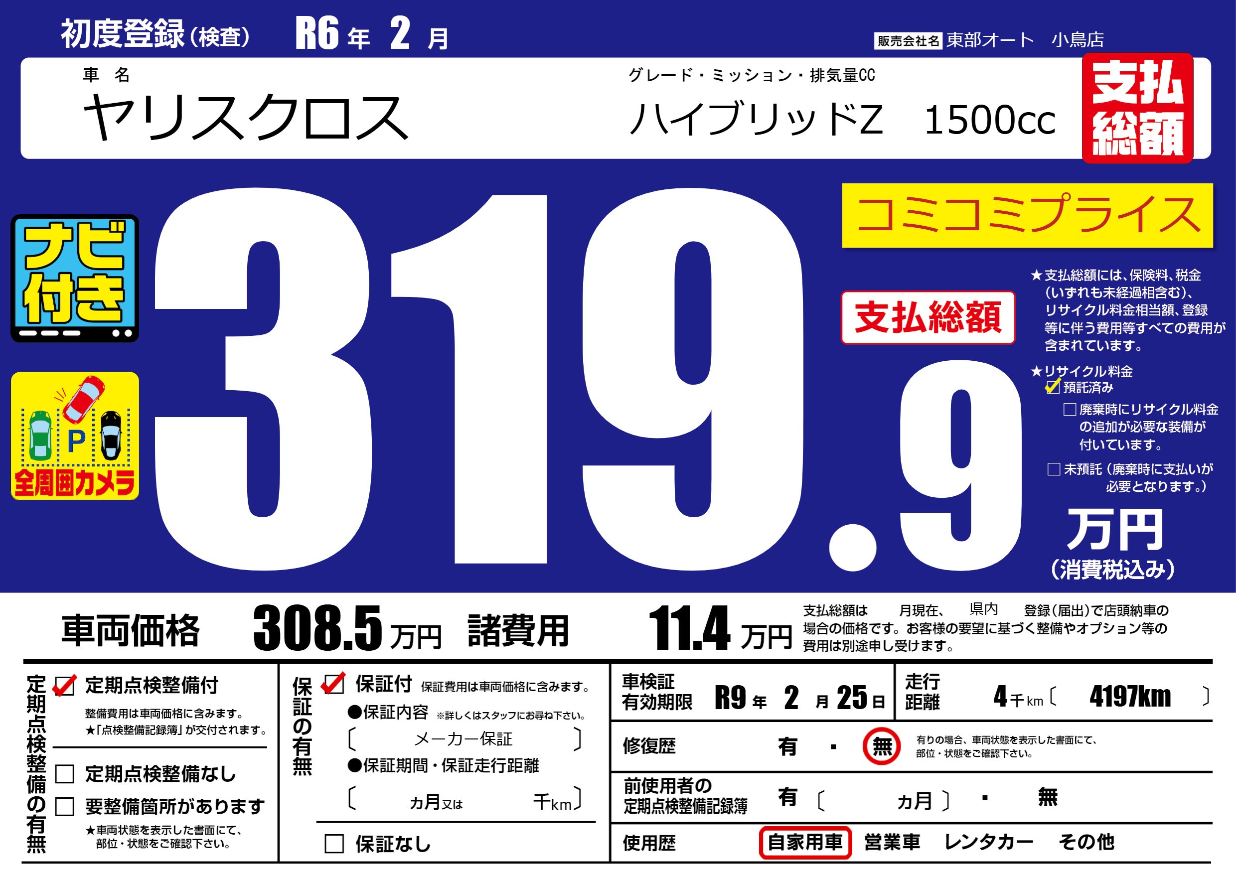 | 走行キロ | 0.4万km | 初年度登録 | R6年2月 |