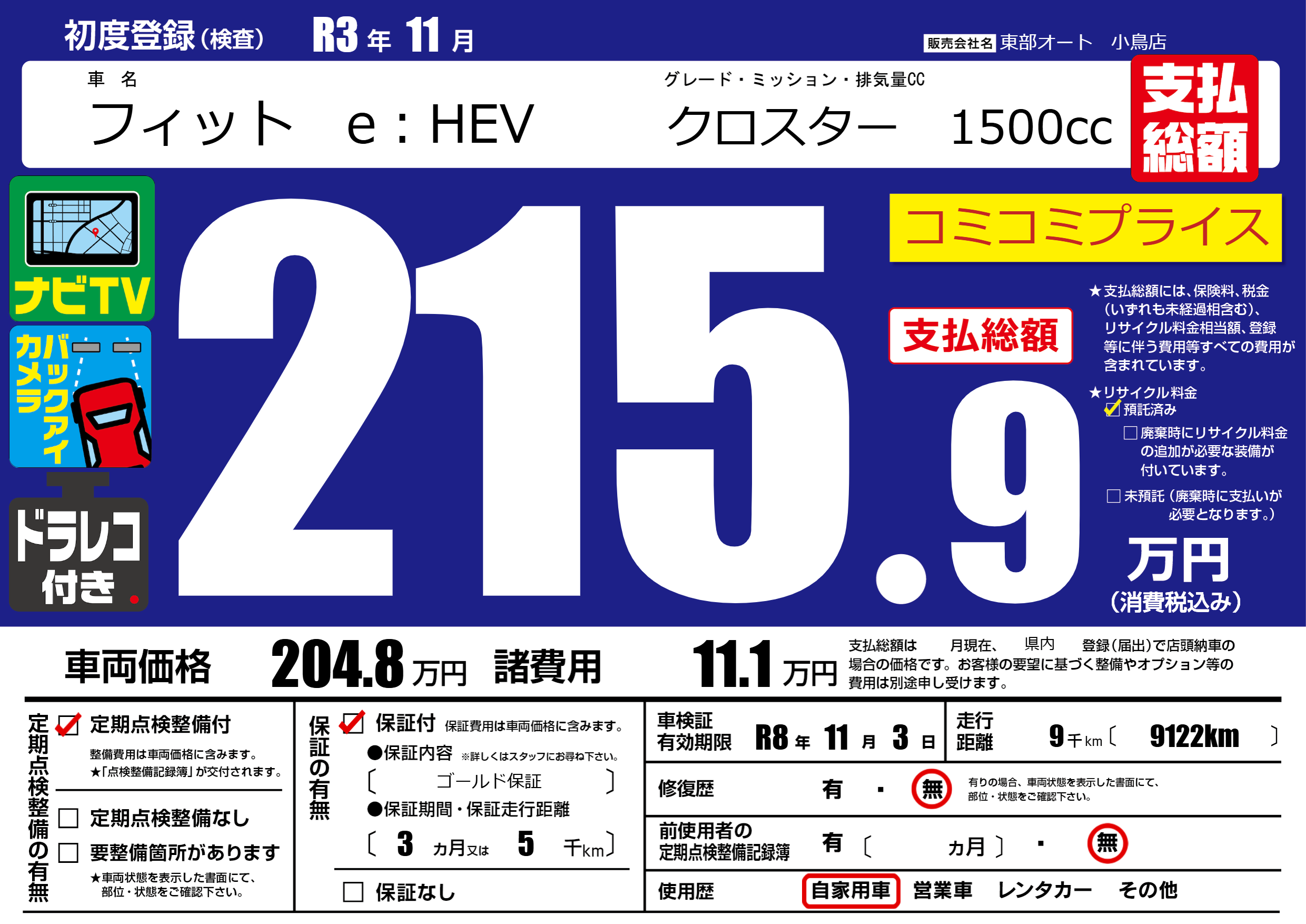 | 走行キロ | 0.9万km | 初年度登録 | R3年11月 |