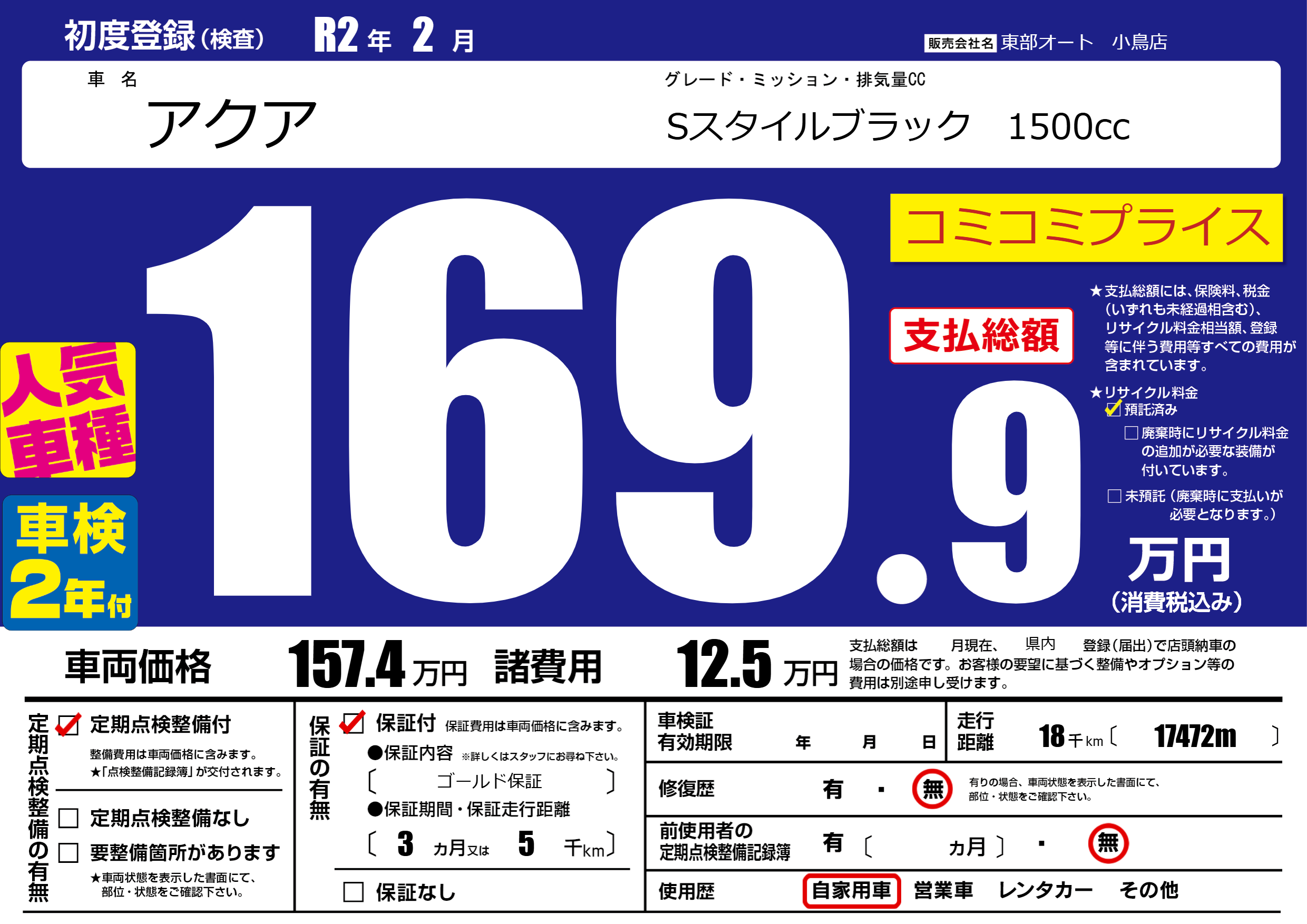 | 走行キロ | 1.8万km | ||