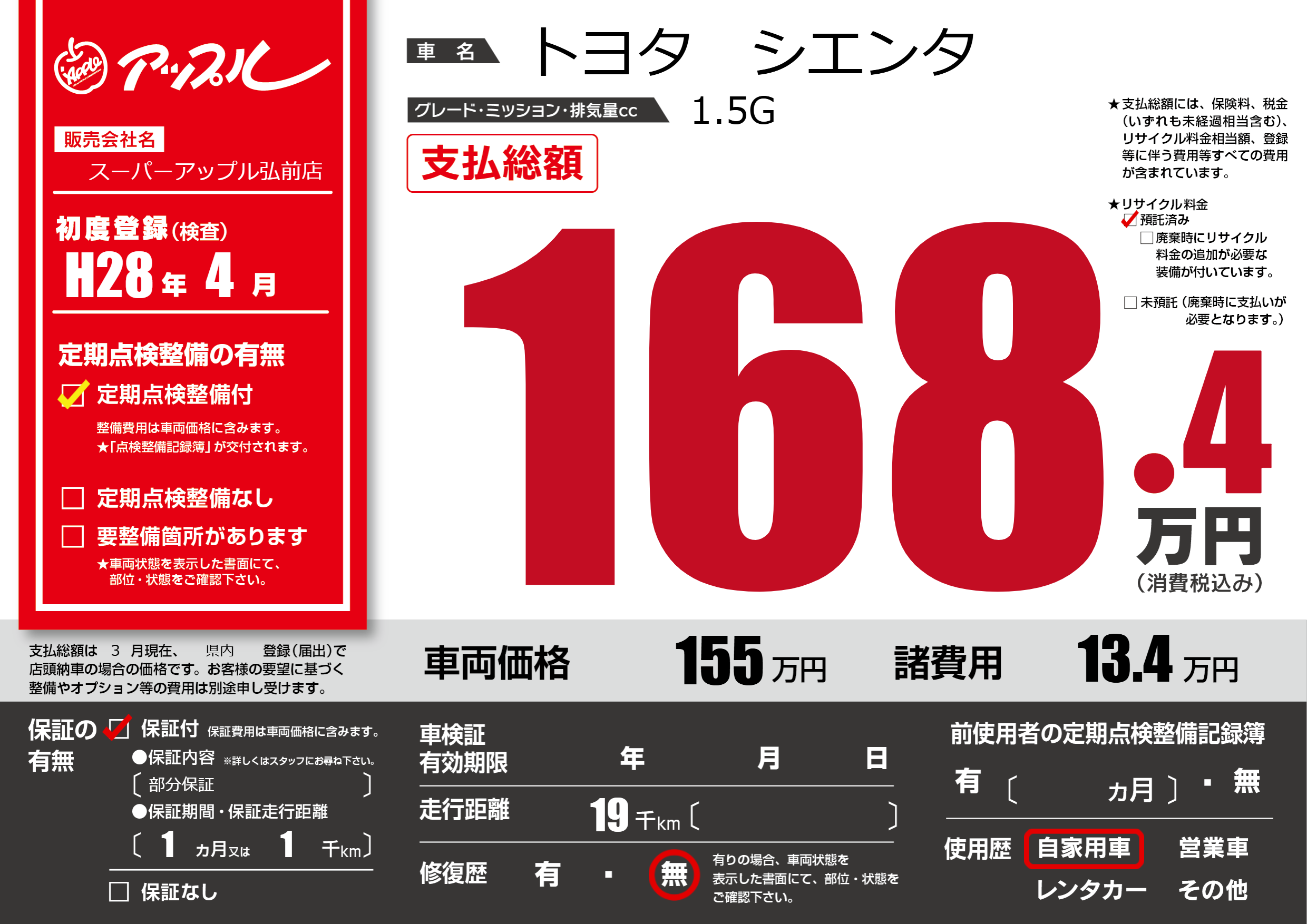 | 定期点検整備 | 定期点検整備あり | ||