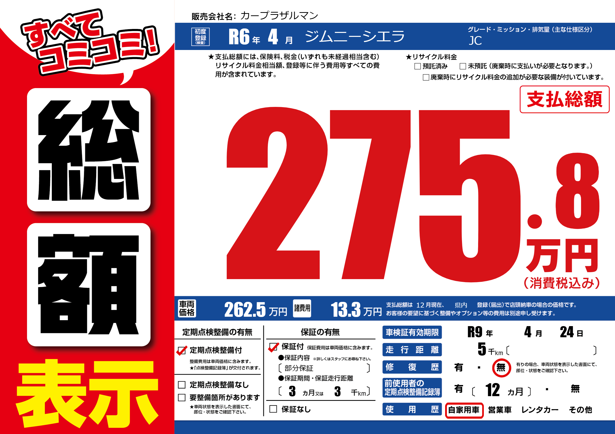 | 車名 | ジムニーシエラ | グレード ミッション 排気量 |