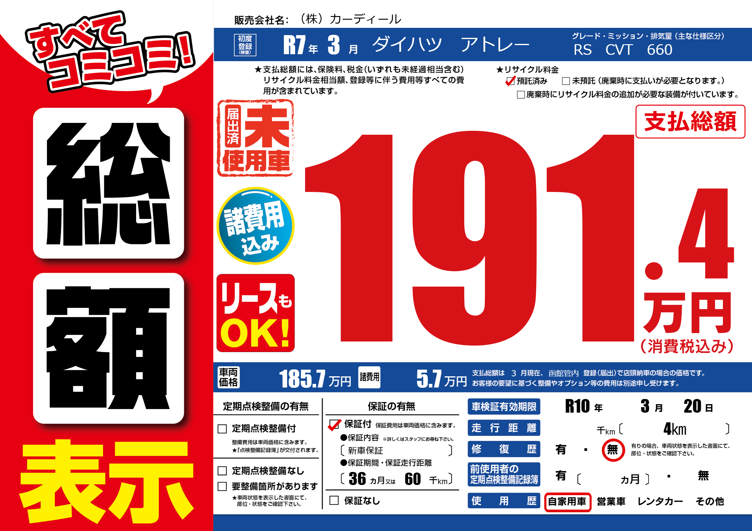 | 車検制限 | R10年 3月 20日 | ||