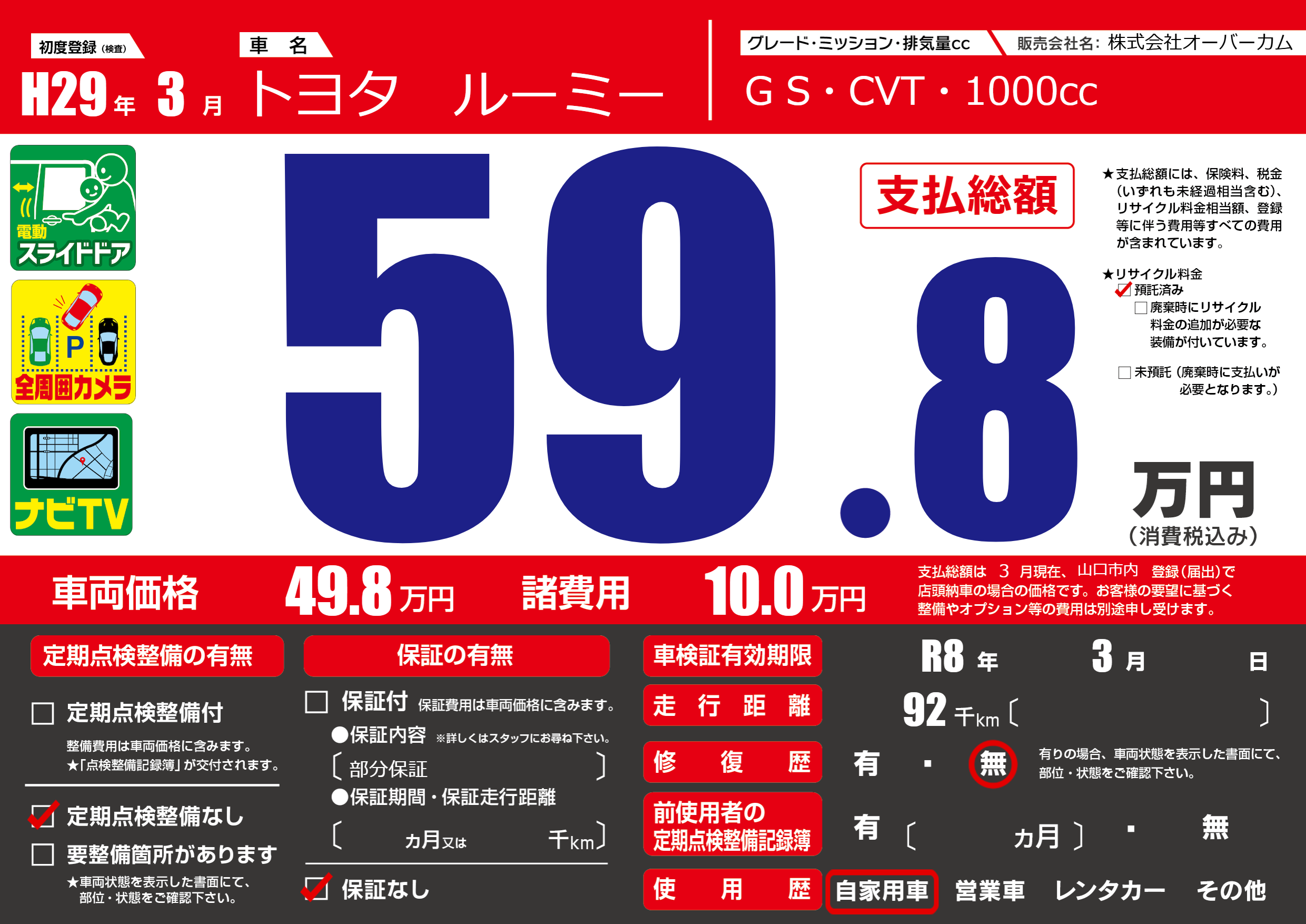 なし | 車検制限 | R8年3月---月 |