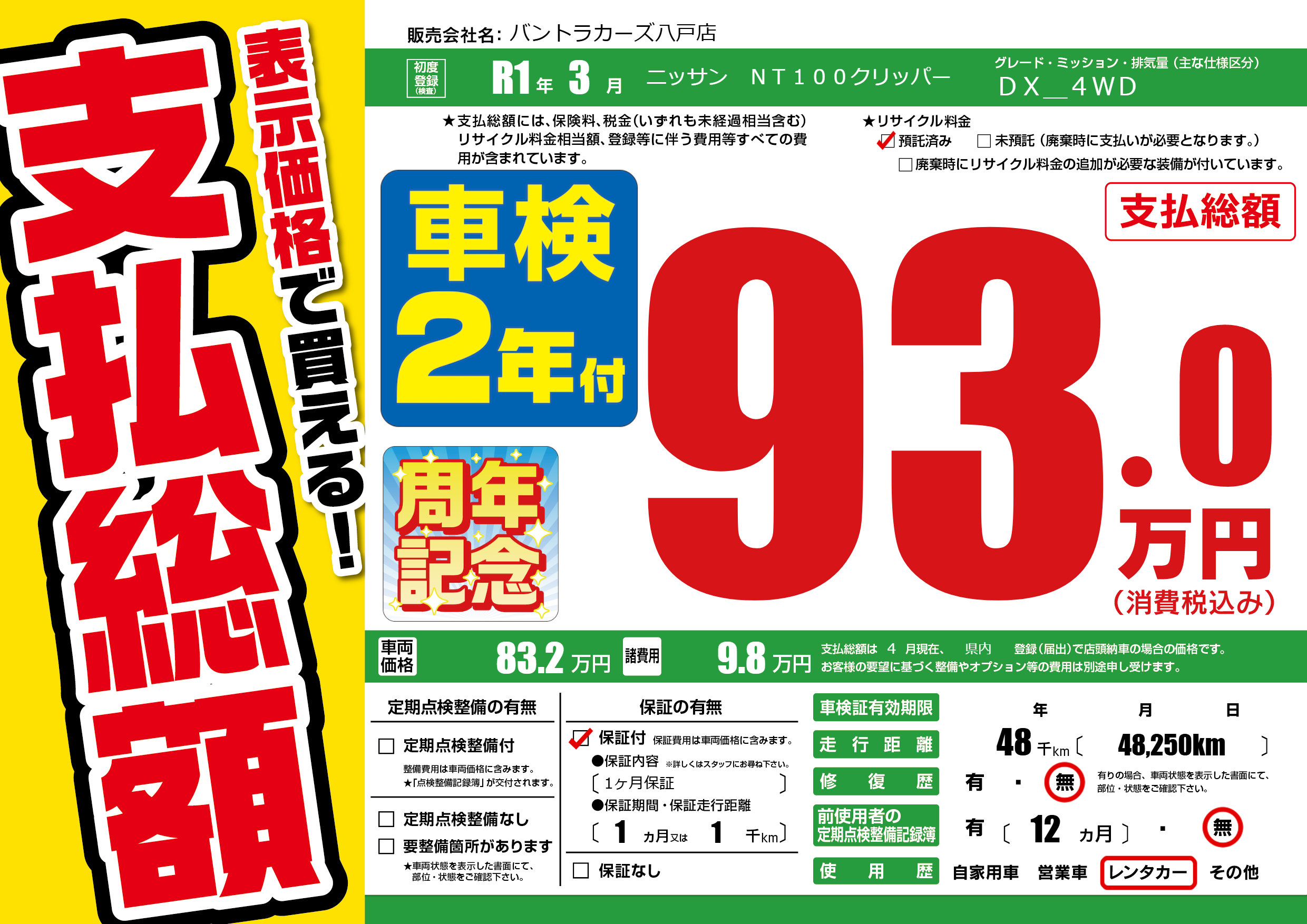 | 車名 | ニッサン NT100クリッパー | グレード ミッション 排気量 |