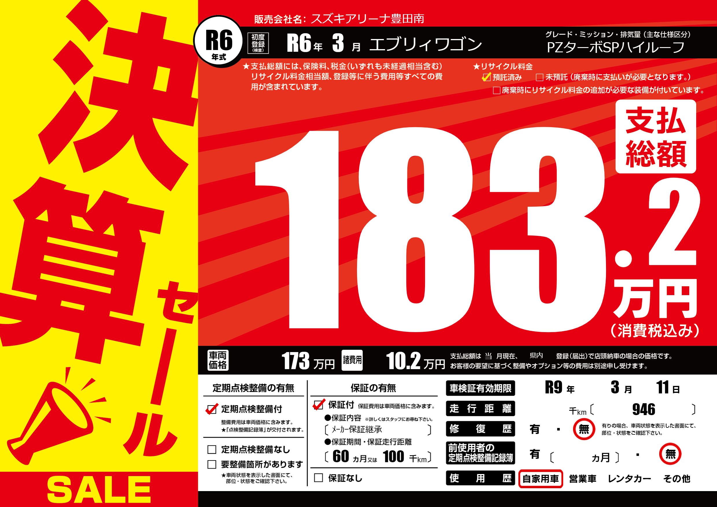 なし | 車検制限 | R9年3月11月 |