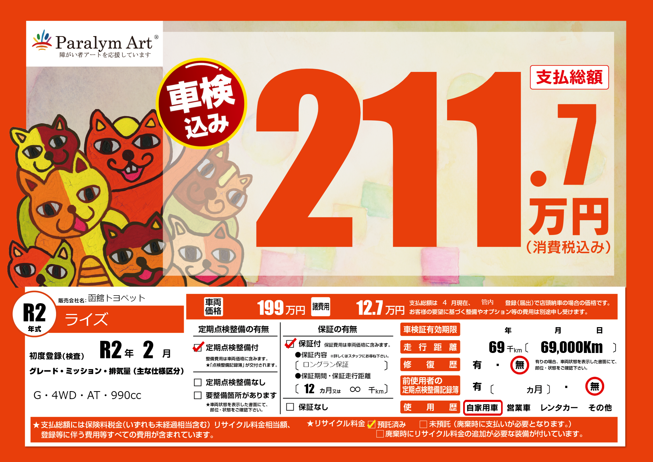 | 走行キロ | 6.9万km | 初年度登録 | R2年2月 |