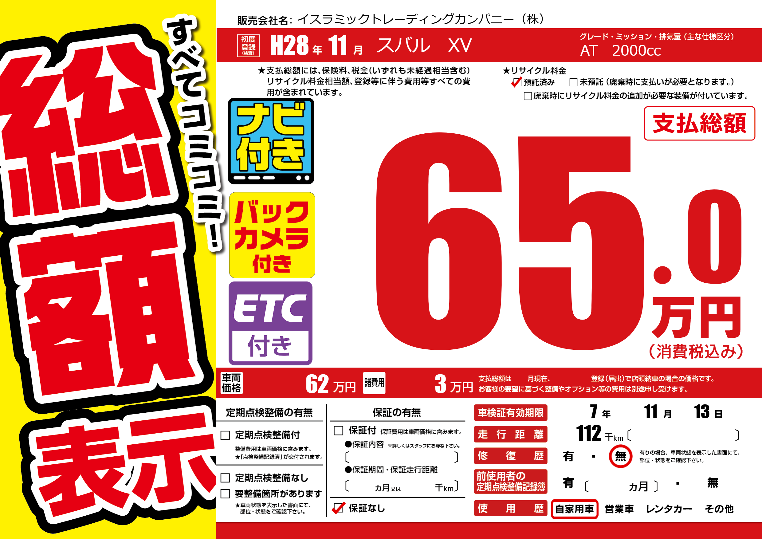 | 車検制限 | 7年 11月 13日 | ||