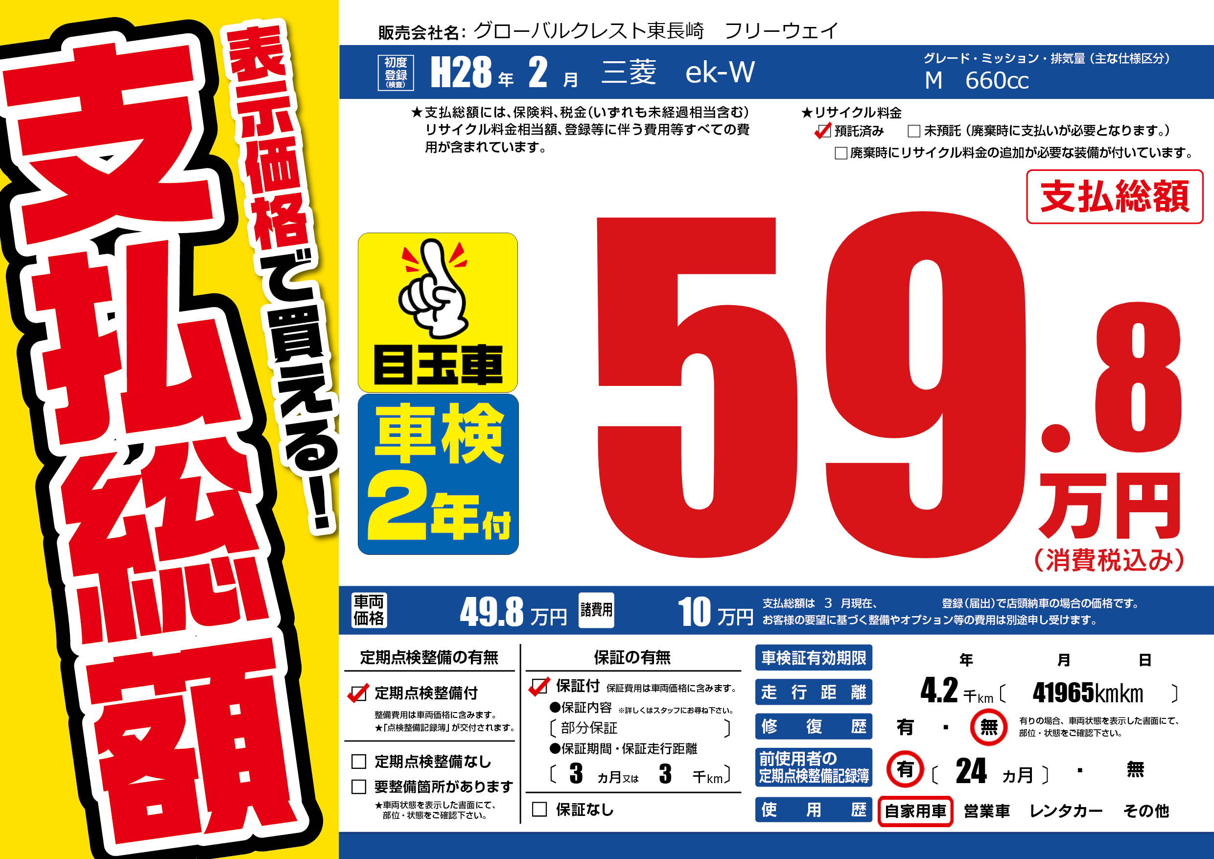 | 車名 | 三菱 ek-W | グレード ミッション 排気量 |