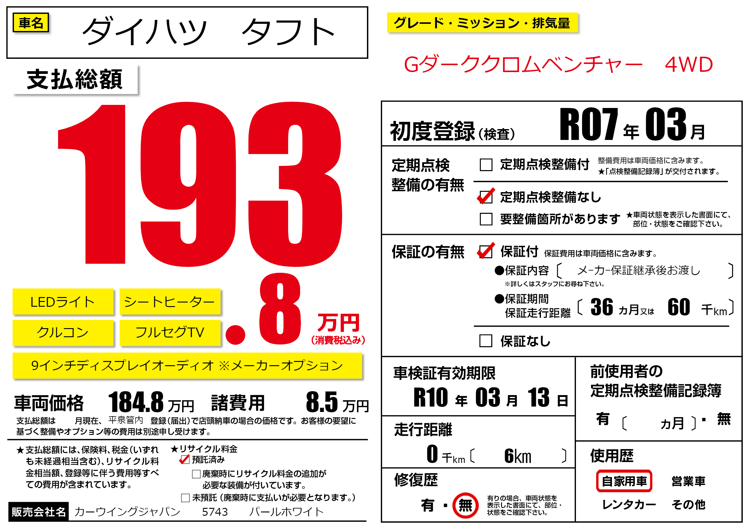 なし | 車検制限 | R10年03月13月 |