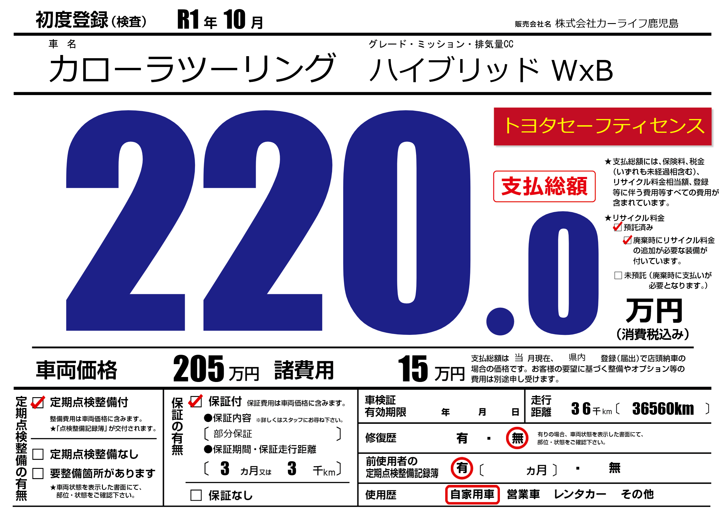 | 走行キロ | 0.3万km | 初年度登録 | R1年10月 |