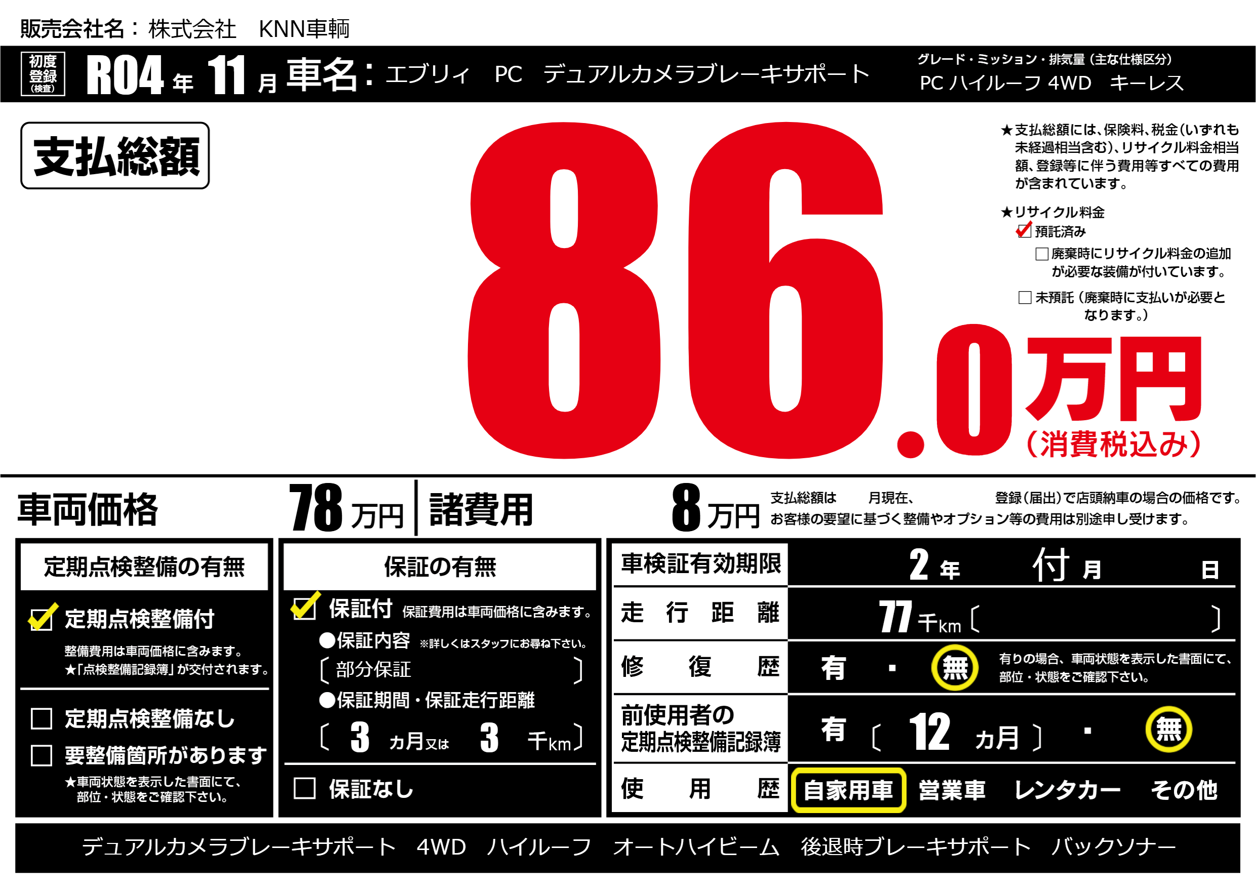 なし | 車検制限 | 2年付月---月 |