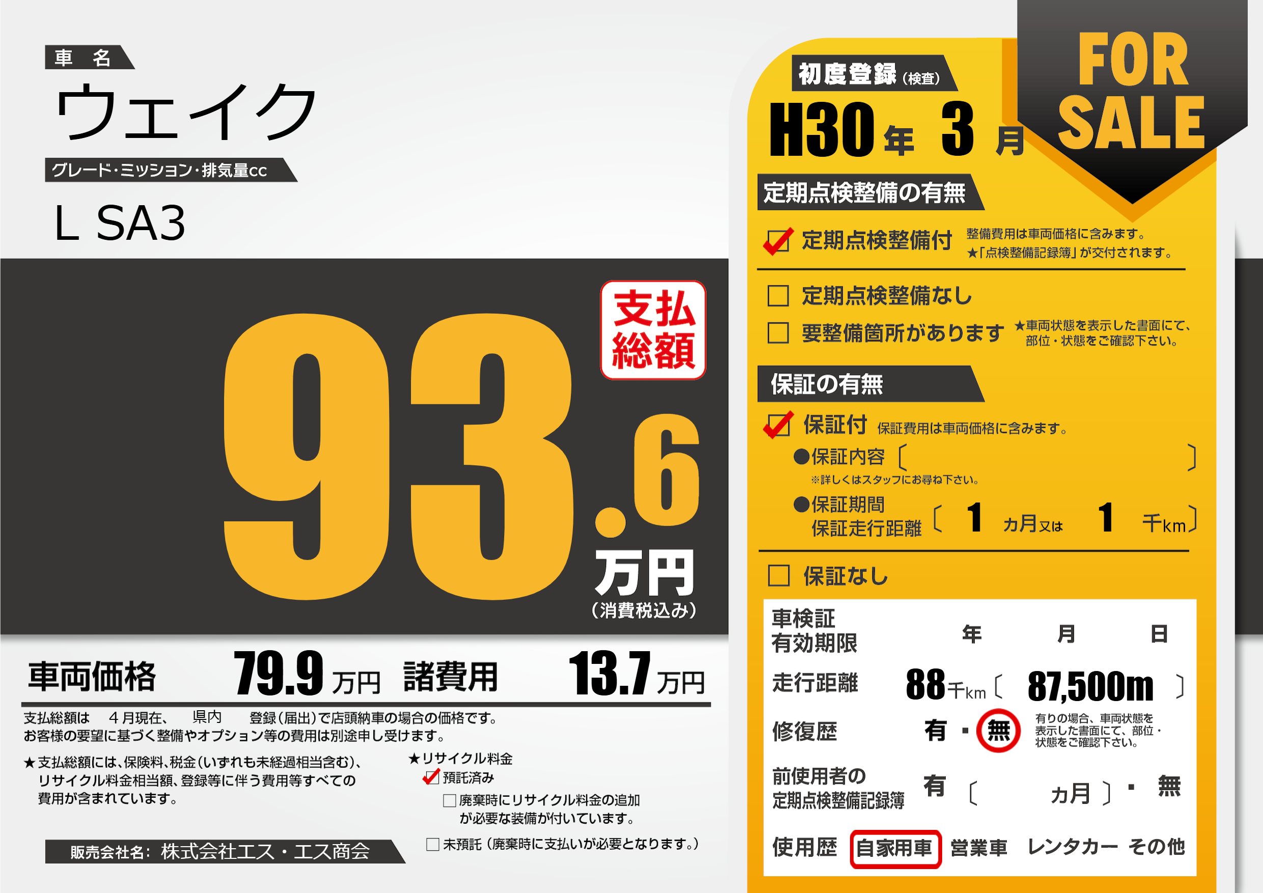 | 車名 | ウェイク | グレード ミッション 排気量 |