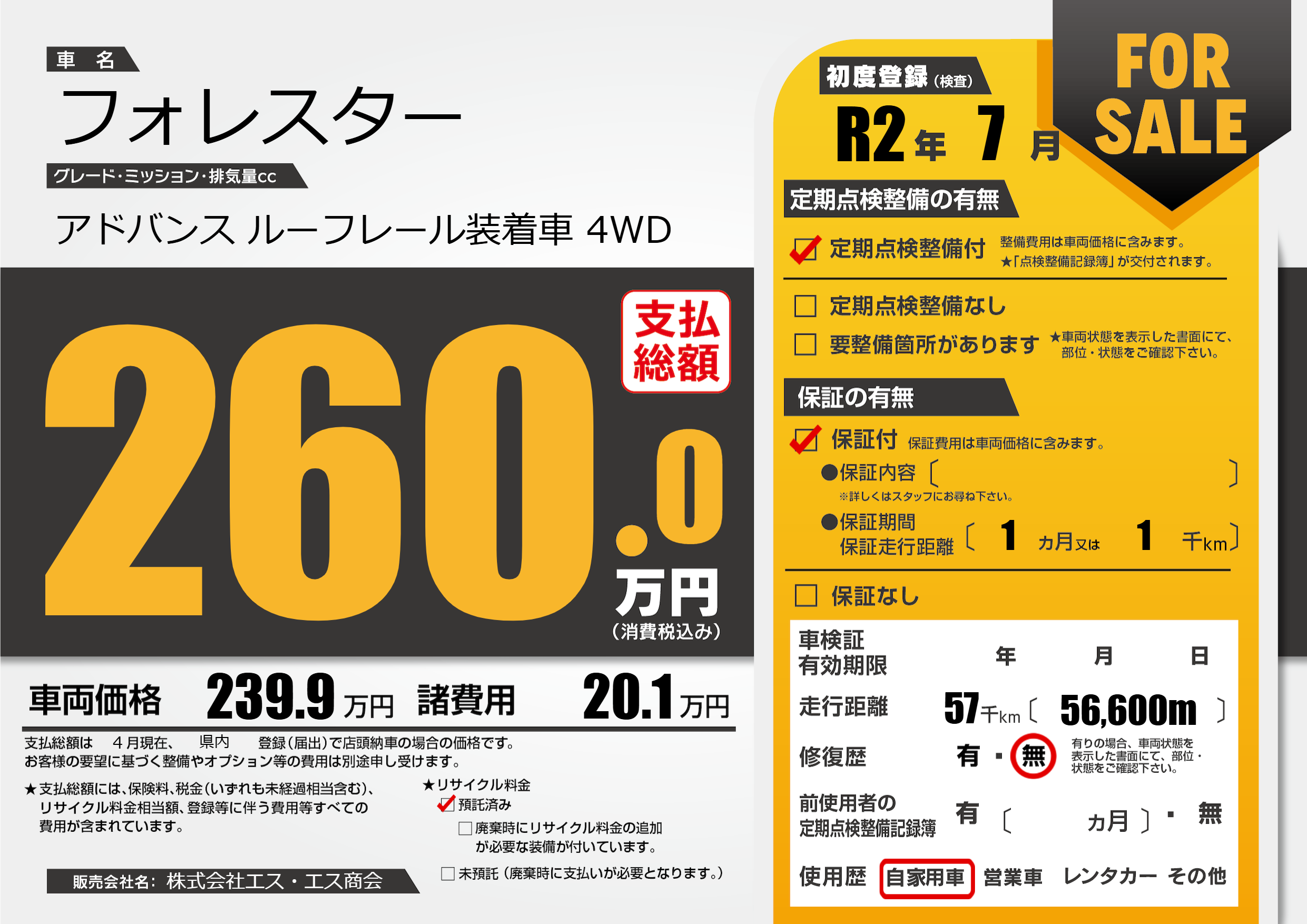 | 車名 | フォレスター | グレード ミッション 排気量 |
