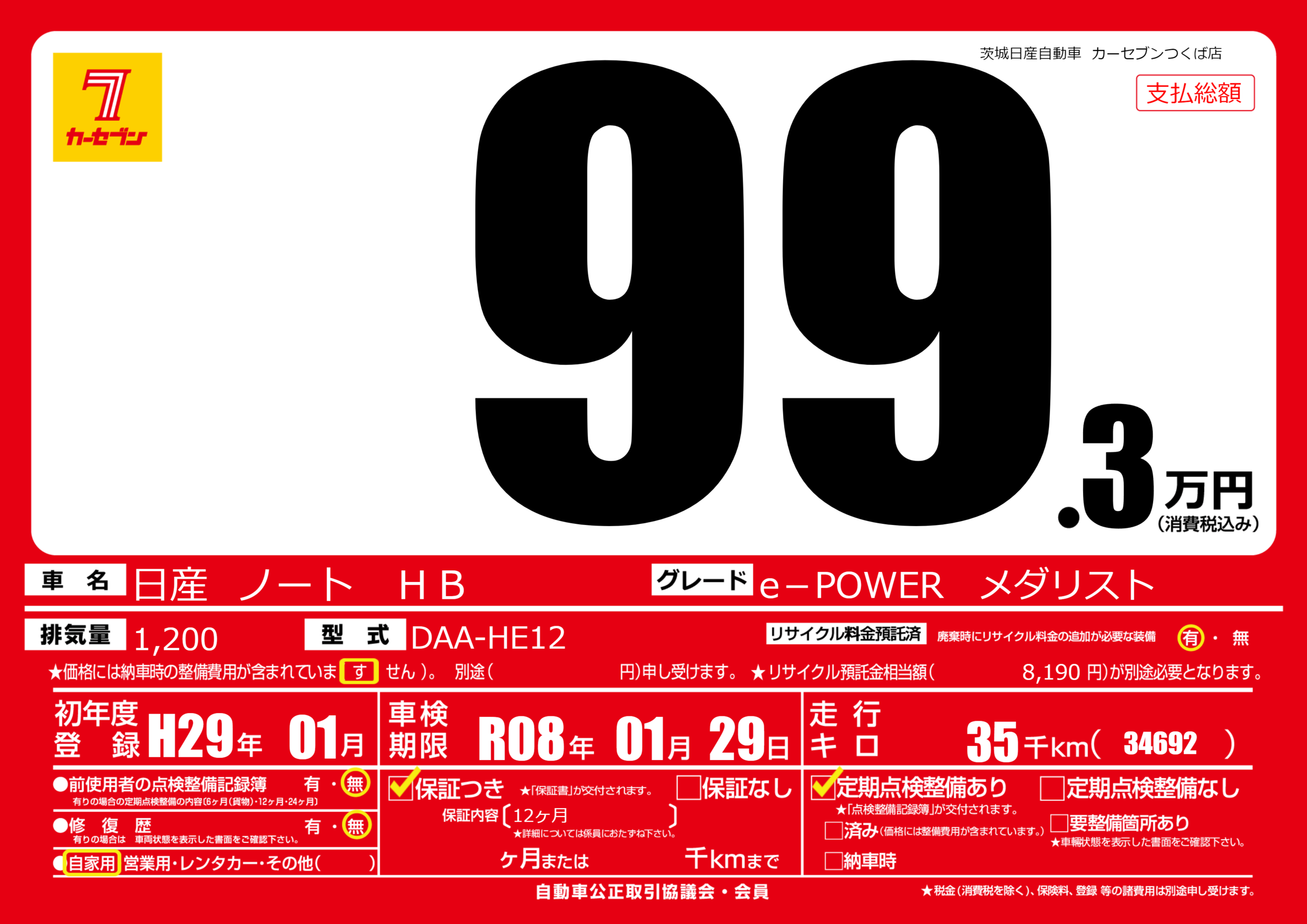 保証付き 保証内容(12ヶ月) ヶ月または千km |