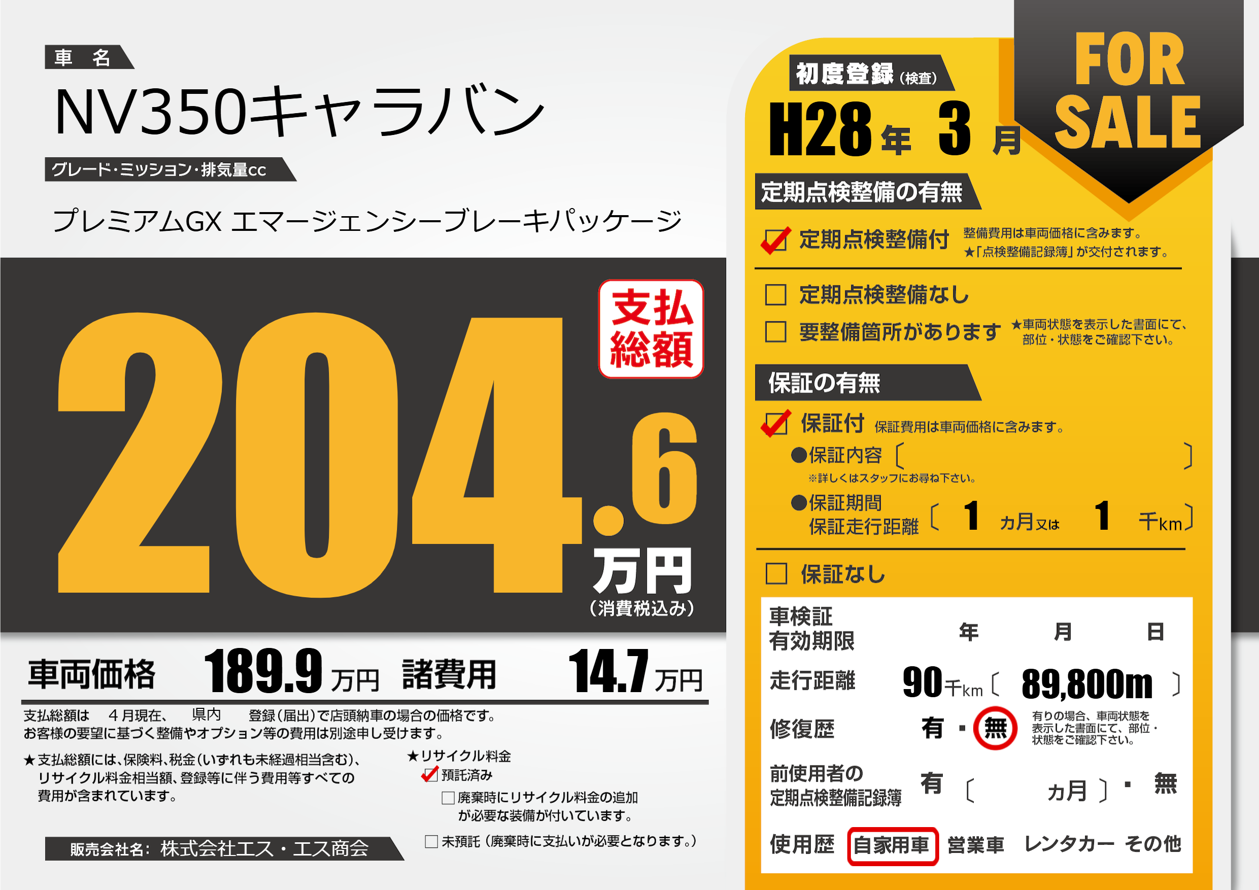 | 走行キロ | 9万km | ||