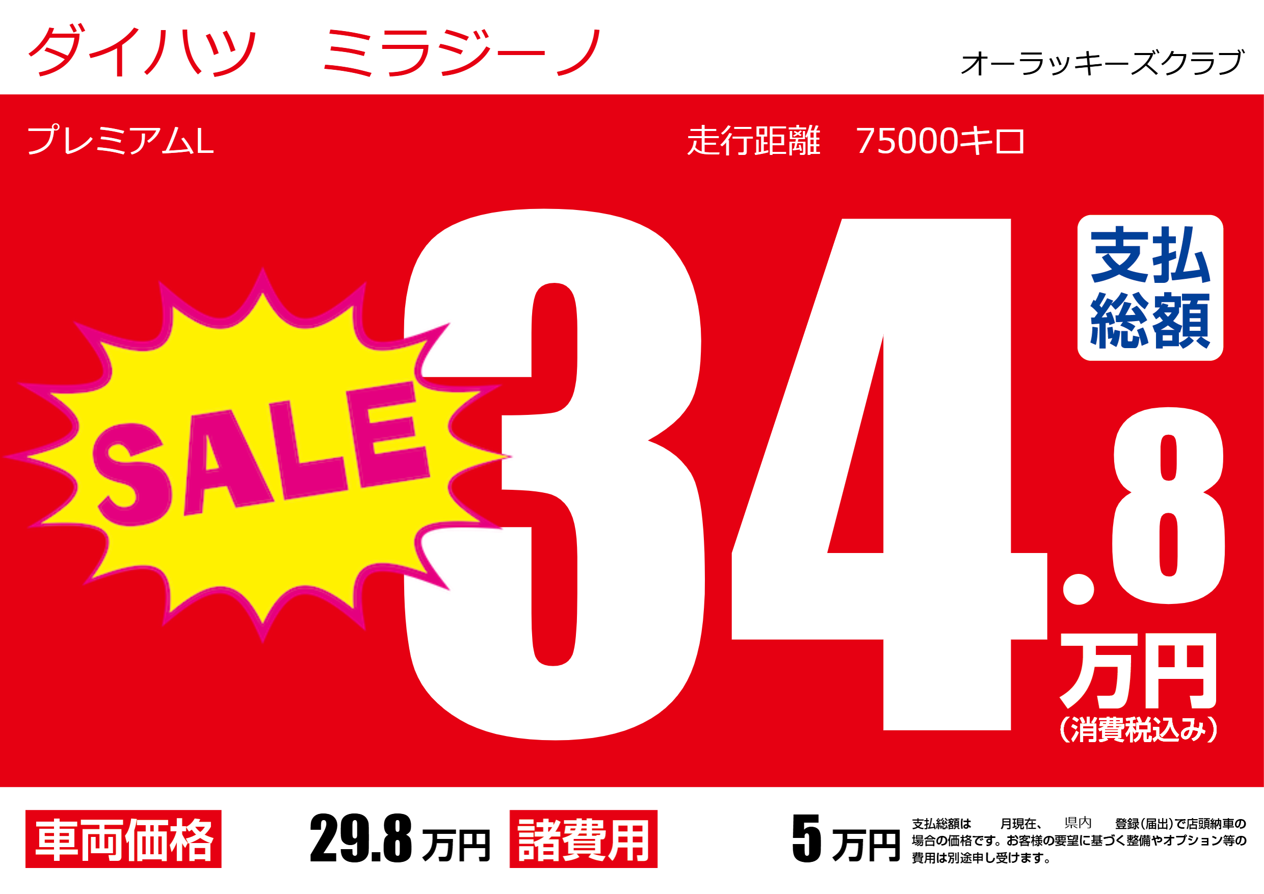 | 車名 | ダイハツ ミラジーノ | グレード ミッション 排気量 |
