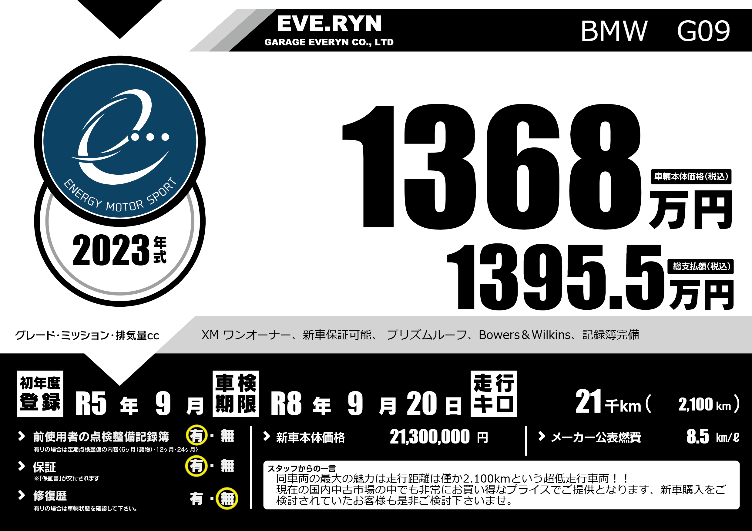 | 車名 | BMW G09 | グレード ミッション 排気量 |