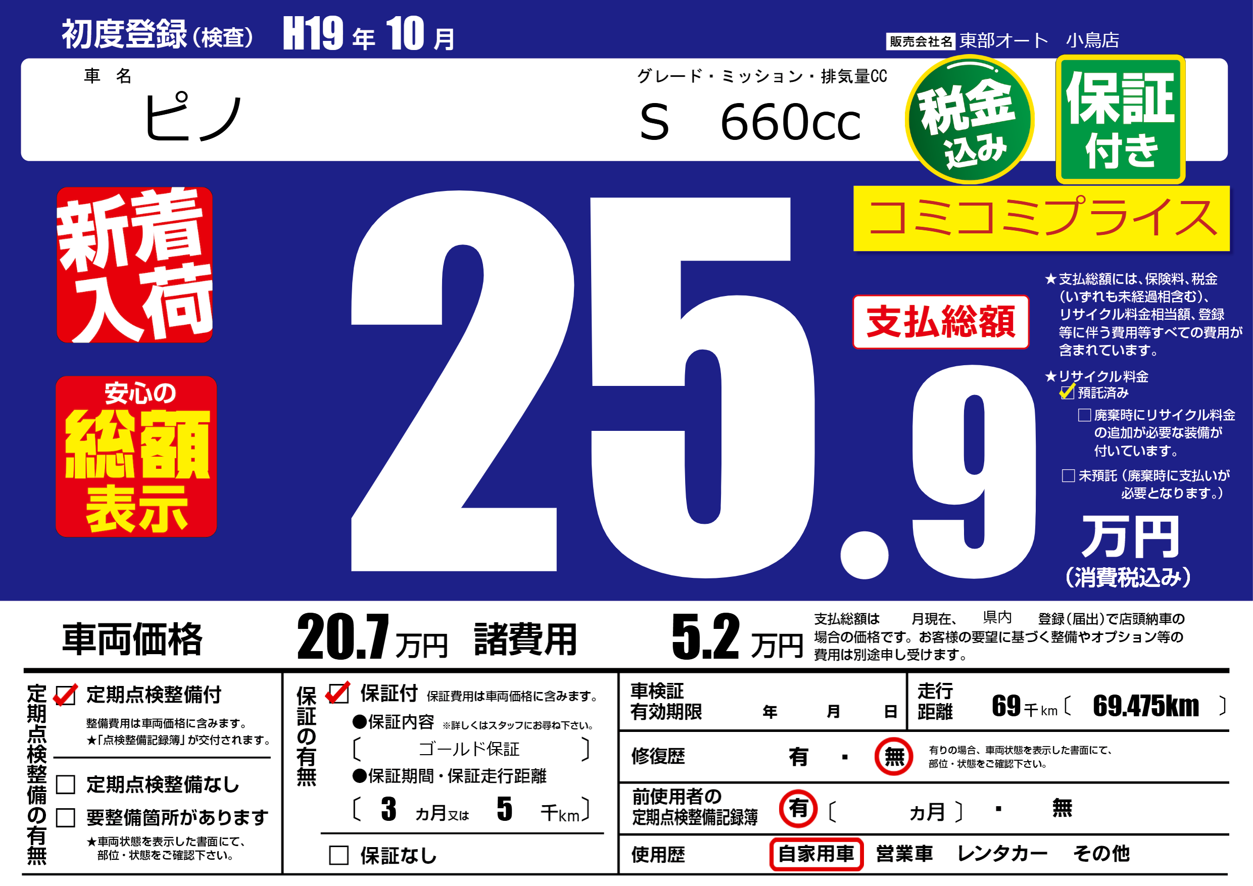 | 定期点検整備 | 定期点検整備あり | ||